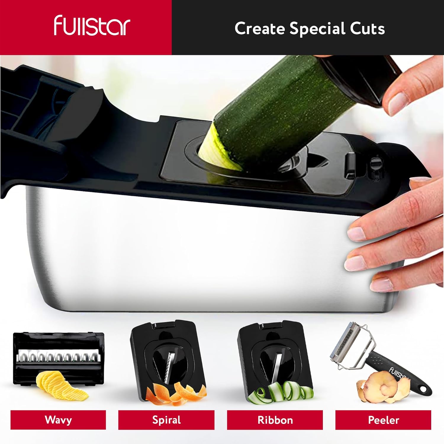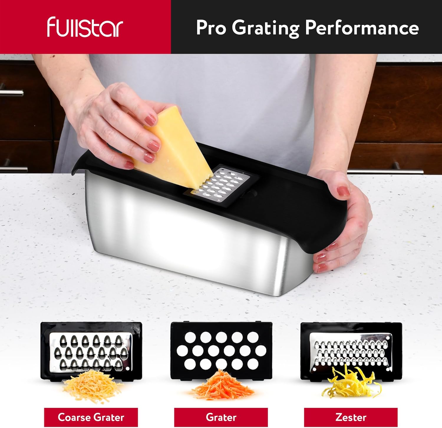 Complete Food Prep Station – Transform ingredients with multiple blade options: 5mm slicer, coarse and fine graters, spiral blades, ribbon cutter, and more. Each blade delivers precise cuts, while the TPU grip handle provides perfect control.