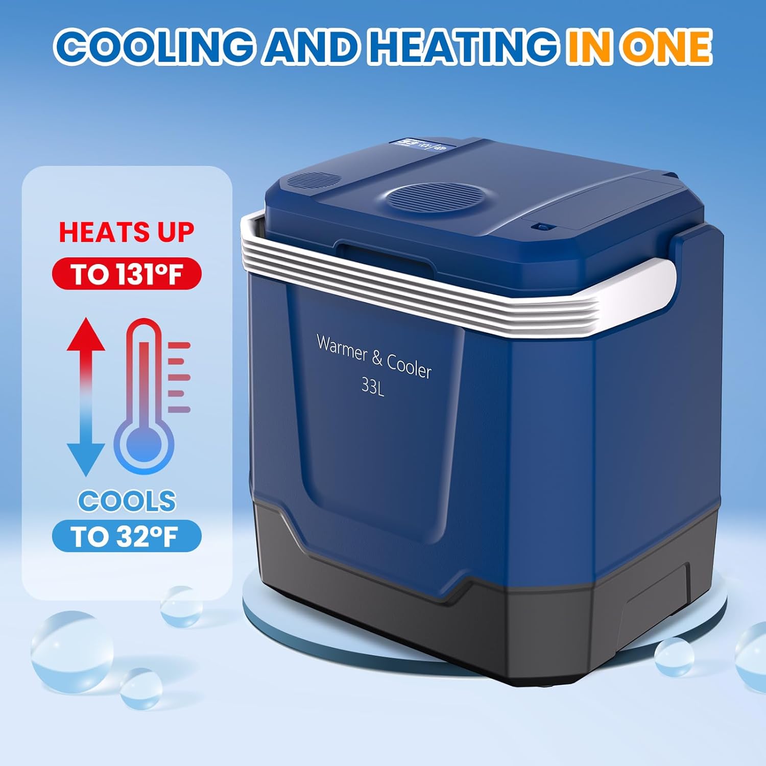 35 Quart Interior Compartment: The electric cooler interior is spacious enough to accommodate from numerous bottles, food containers, utensils, to-go meals, refrigerated medications, to even 2-liter soda bottles! The easy-clean design allows for quick wipe-downs in minimal maintenance