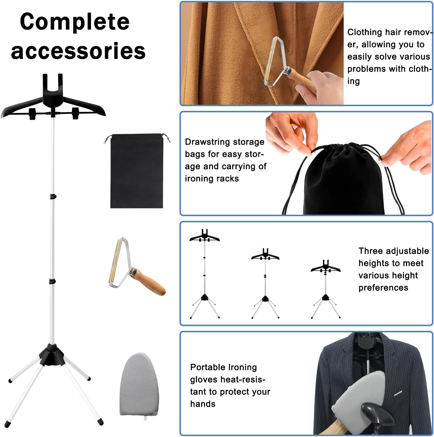 Garment Steamer Stand Rack for Clothes With Stand, Folding Garment Steamer Iron Stand With Ironing Gloves,Ideal for Travel and Home Ironing