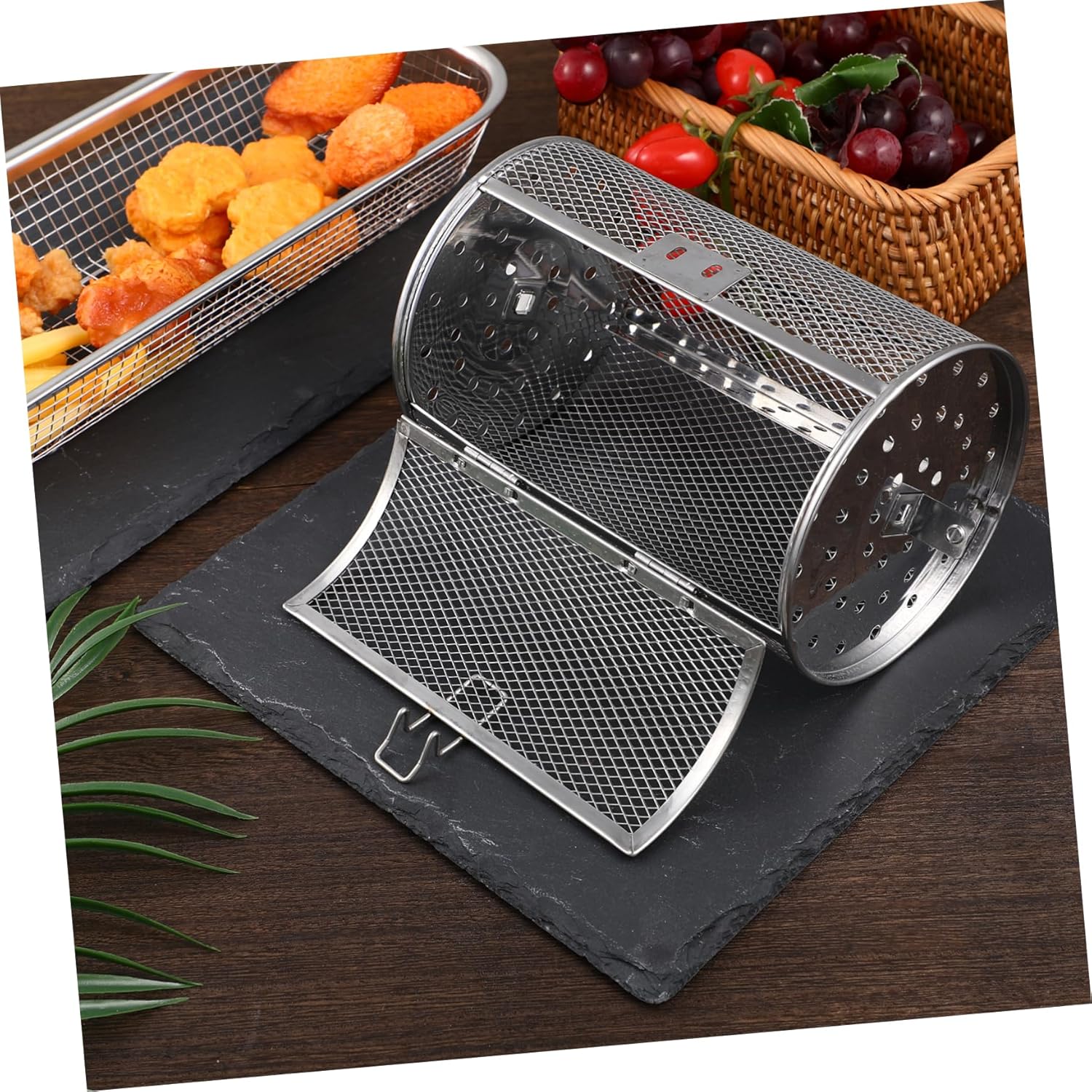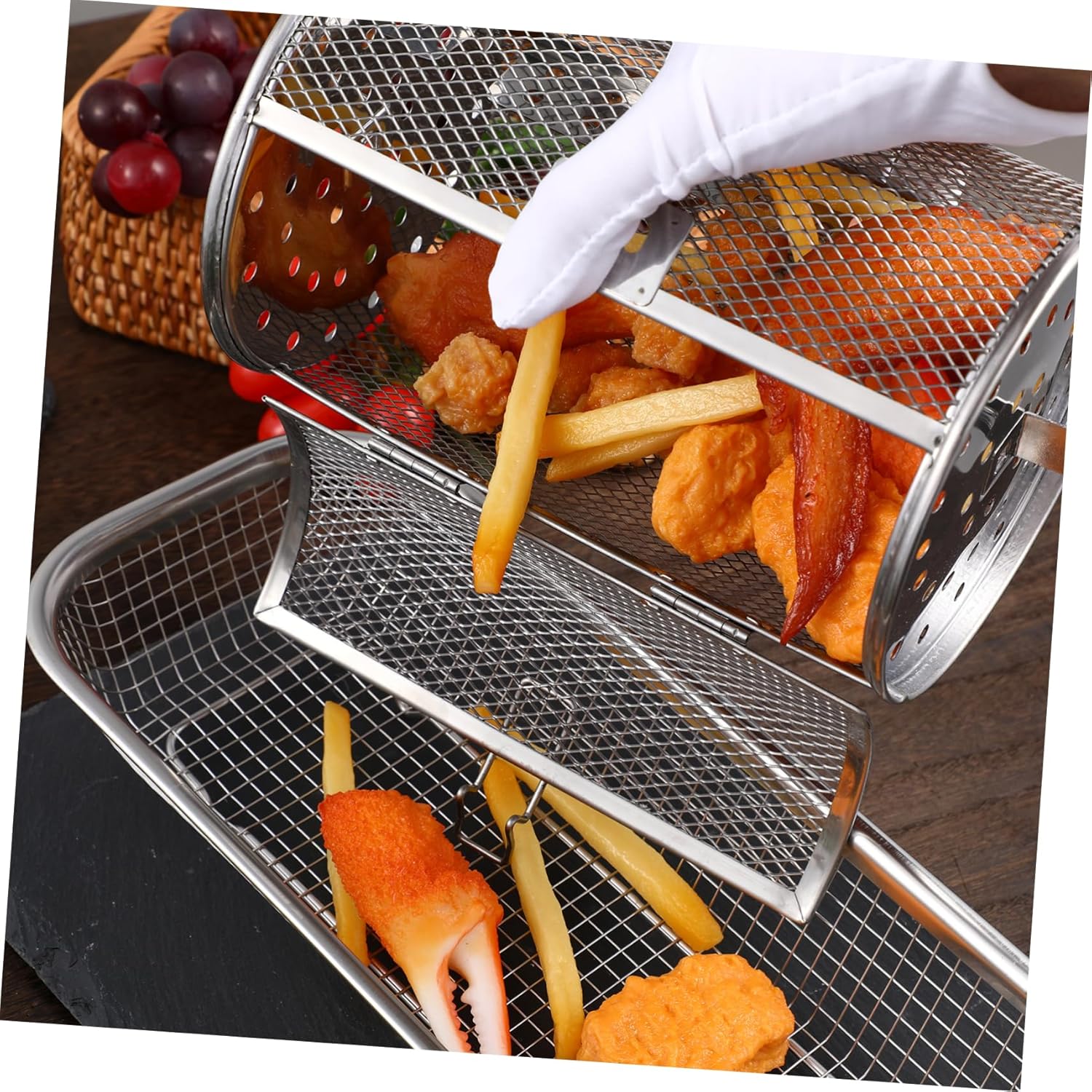 Off-rolling grilling basket:square hole in the center for you to insert a rotating rod,air fryer basket replacement
