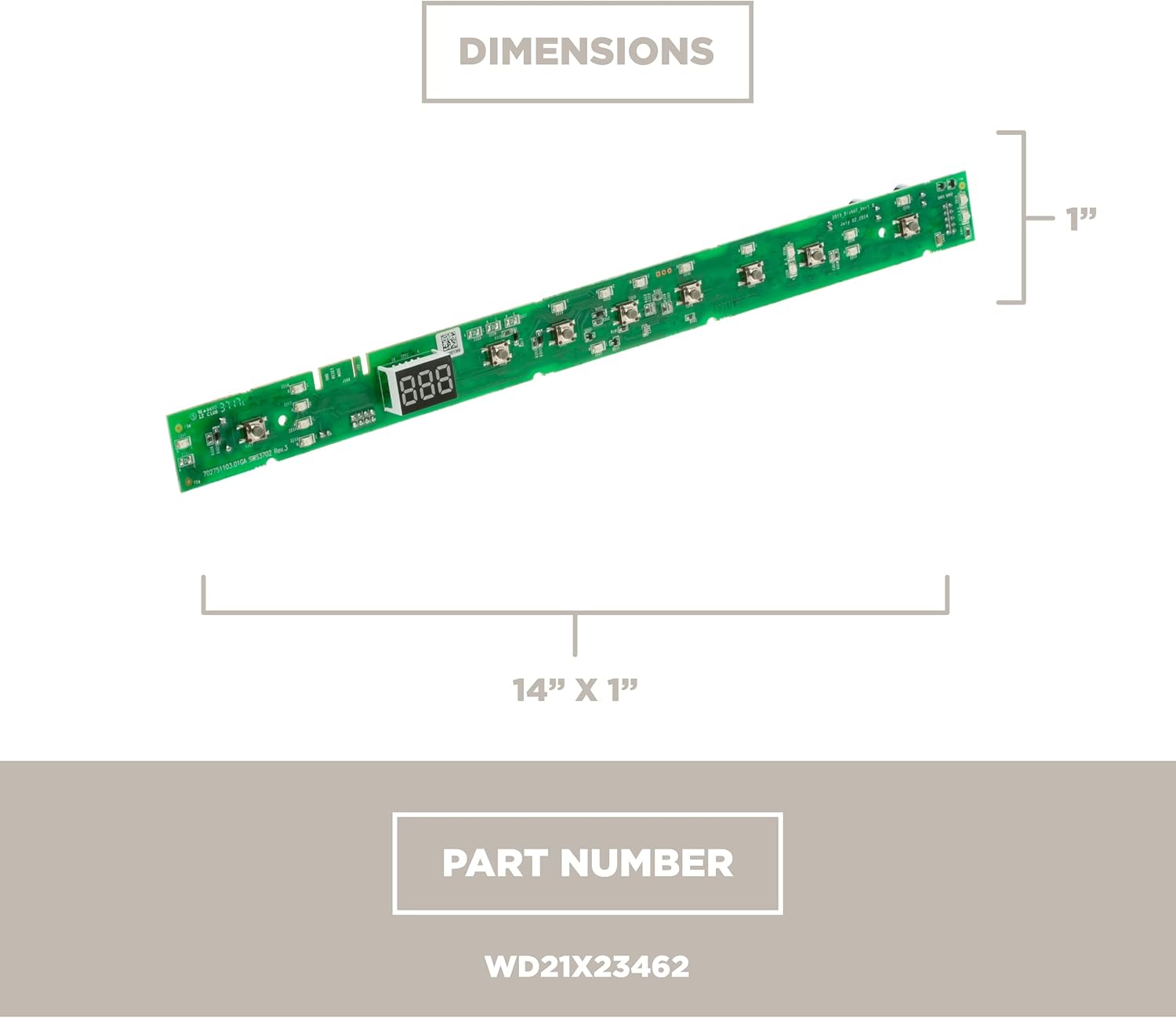 Dishwasher User Interface (part number WD21X23462) is a Genuine GE replacement part. For more than 100 years, GE Appliances has been a trusted brand, synonymous with quality and reliability. To continue earning your trust, our appliances and parts are engineered to precise specifications and subjected to rigorous testing. Behind every GE Appliances product is the work of thousands of dedicated Americans committed to excellence as well as a better future for our communities and our environment.
