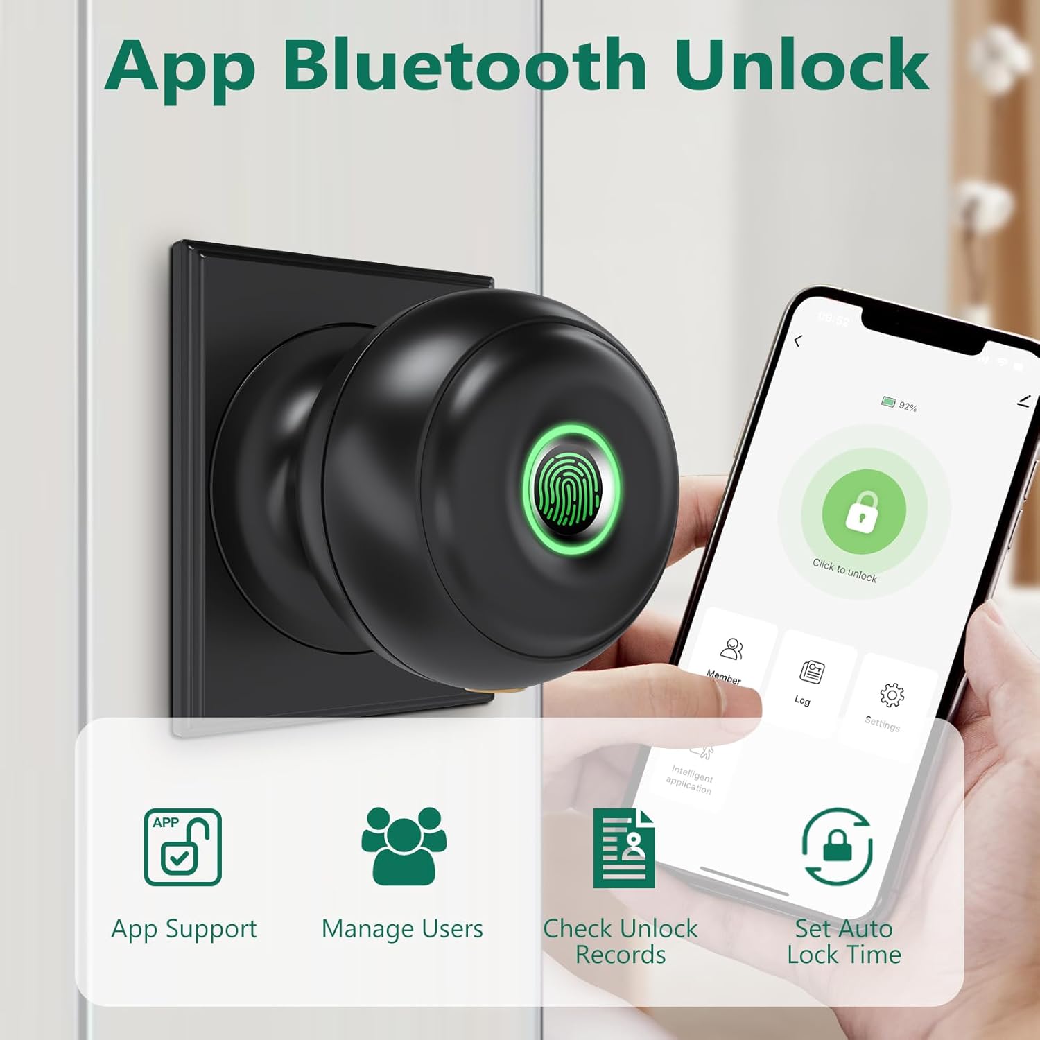 App Control: Fingerprint door lock also a buletooth door knob, you can unlock the door from your app, App also support manage the users, add or delete users, share E-key and view access log, your home and property are better protected