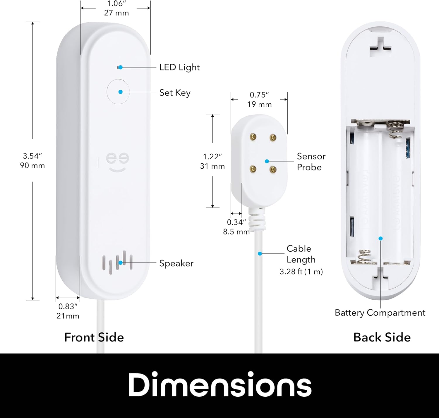 𝐑𝐄𝐋𝐈𝐀𝐁𝐋𝐄 𝐖𝐀𝐓𝐄𝐑 𝐋𝐄𝐀𝐊 𝐃𝐄𝐓𝐄𝐂𝐓𝐈𝐎𝐍 𝐏𝐄𝐑𝐅𝐎𝐑𝐌𝐀𝐍𝐂𝐄: Powered by 2x AAA batteries with a 3-4 month lifespan and featuring an IP44 water protection grade, this sensor ensures long-lasting and dependable operation.