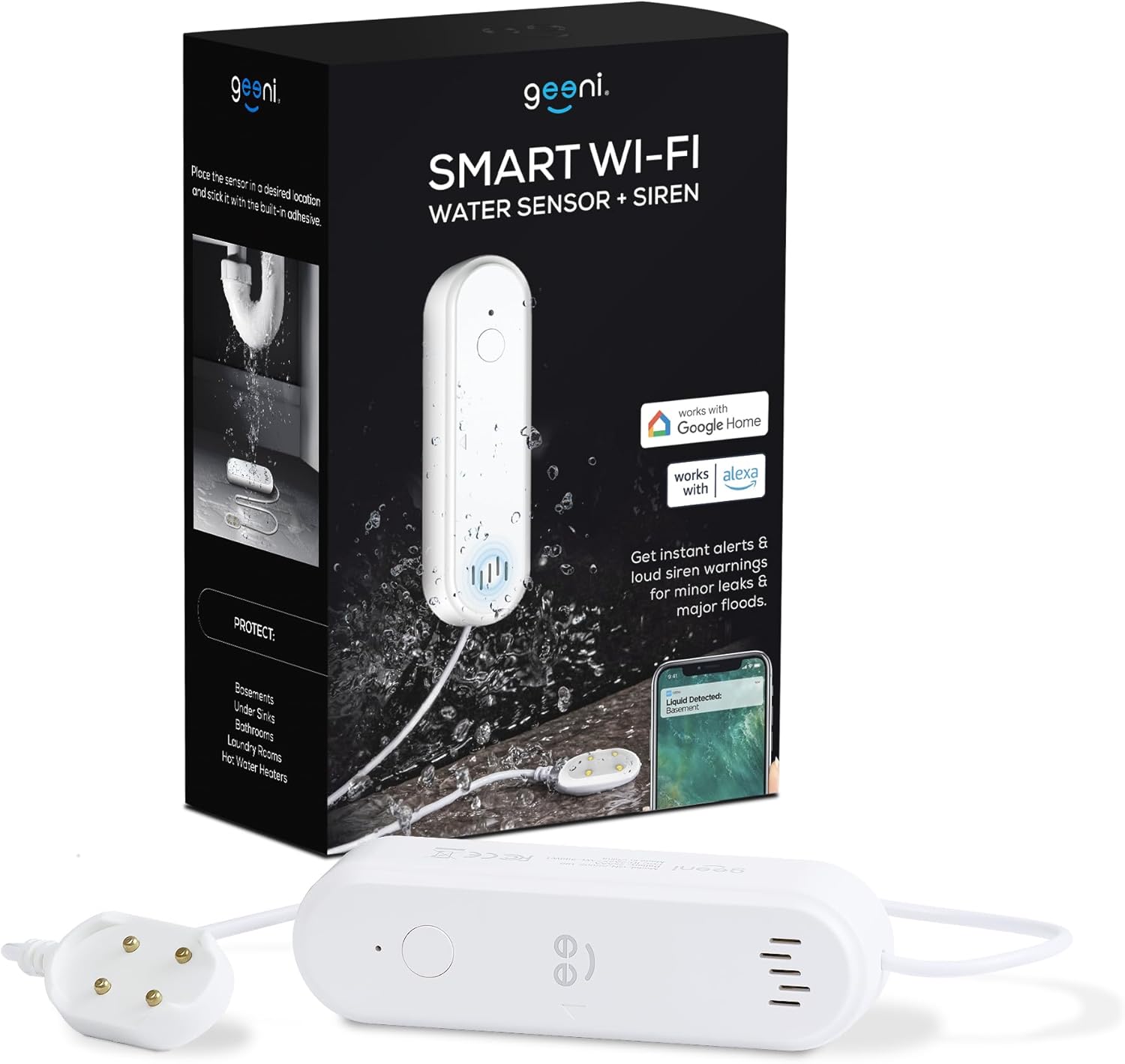 Protect your home with the Geeni Smart Water Alarm Leak Detector, designed for ultimate reliability and ease of use. Effortlessly install this sensor in key areas like basements and under sinks using its built-in adhesive, ensuring comprehensive coverage. At the first sign of a leak, you’ll receive immediate alerts and a powerful 80-decibel siren warning, allowing for quick action to prevent damage. Seamlessly integrate the sensor with other Geeni smart home products to automate responses, such as turning off appliances when water is detected. With long-lasting performance powered by 2x AAA batteries and robust IP44 water protection, this device keeps your home safe and secure. Plus, with Wi-Fi connectivity, you can monitor your home remotely, staying informed and in control from anywhere.