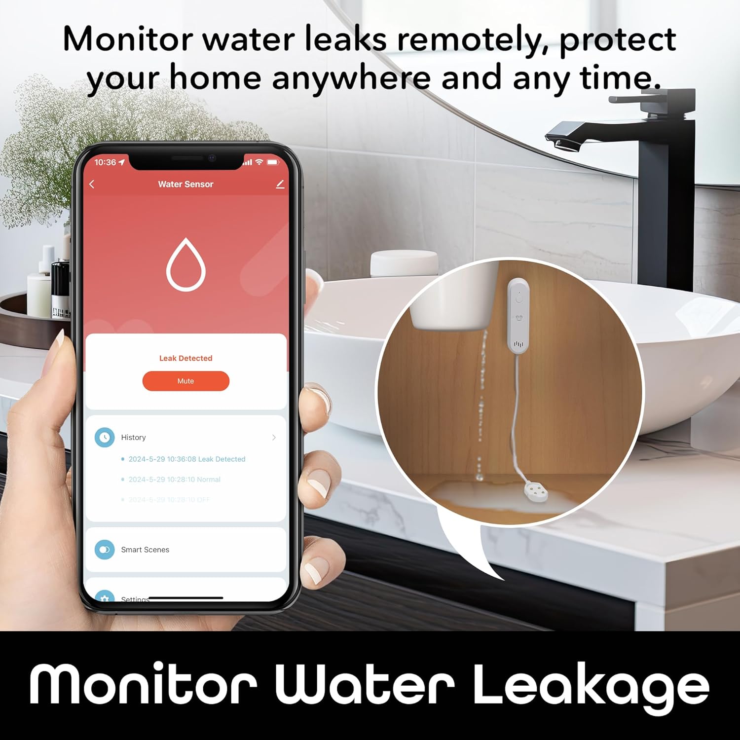 𝐑𝐄𝐌𝐎𝐓𝐄 𝐖𝐈𝐅𝐈 𝐋𝐄𝐀𝐊 𝐃𝐄𝐓𝐄𝐂𝐓𝐎𝐑 𝐌𝐎𝐍𝐈𝐓𝐎𝐑𝐈𝐍𝐆: Stay connected and in control with Wi-Fi notifications, compatible with 2.4 GHz bands, allowing you to monitor your home from anywhere, at any time.