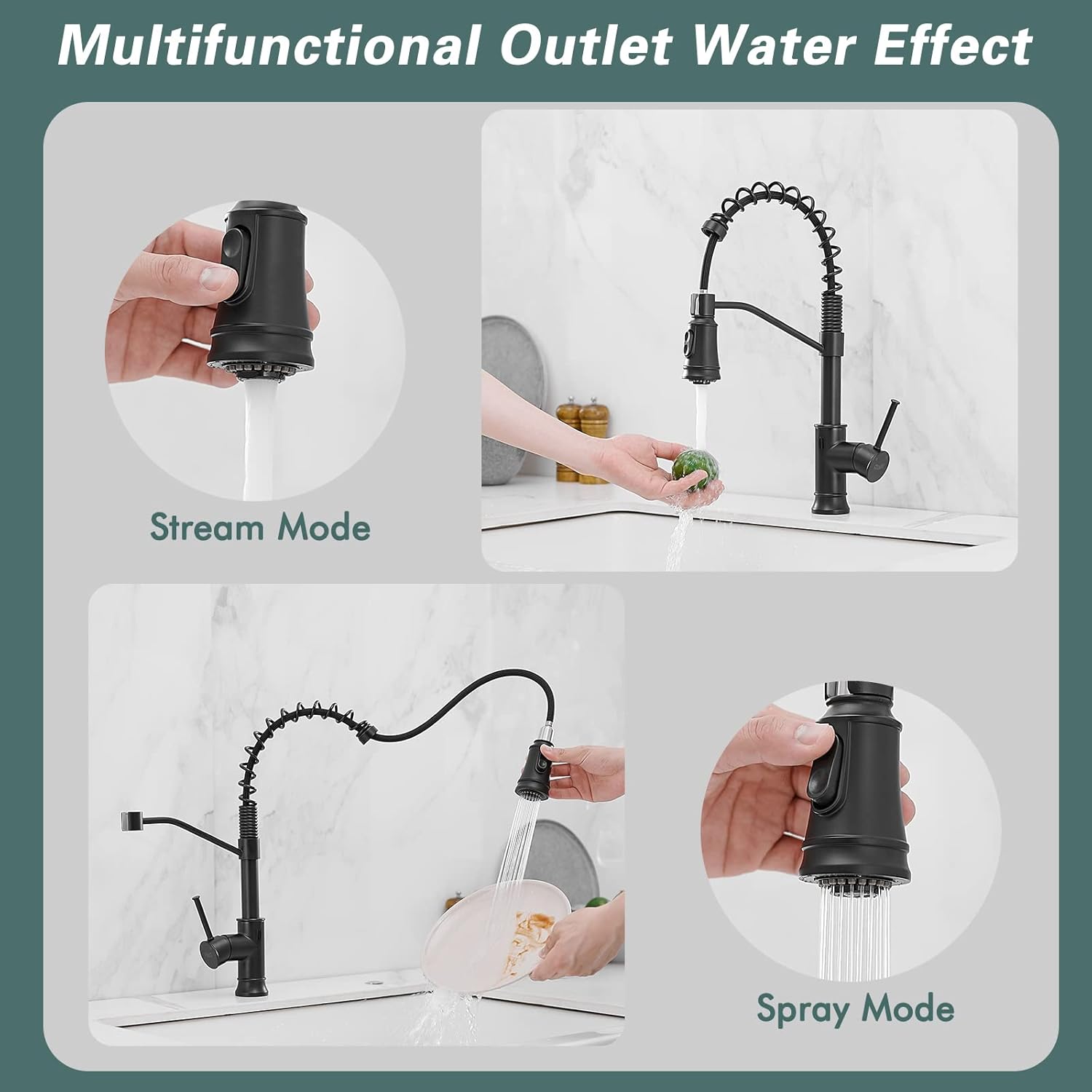Multifunctional Sprayer: Pull out kitchen faucet with 2 setting modes: stream for filling water, spray for strong cleaning. Touchless kitchen faucets offer unique flexibility in kitchen operations to reach any of your needs