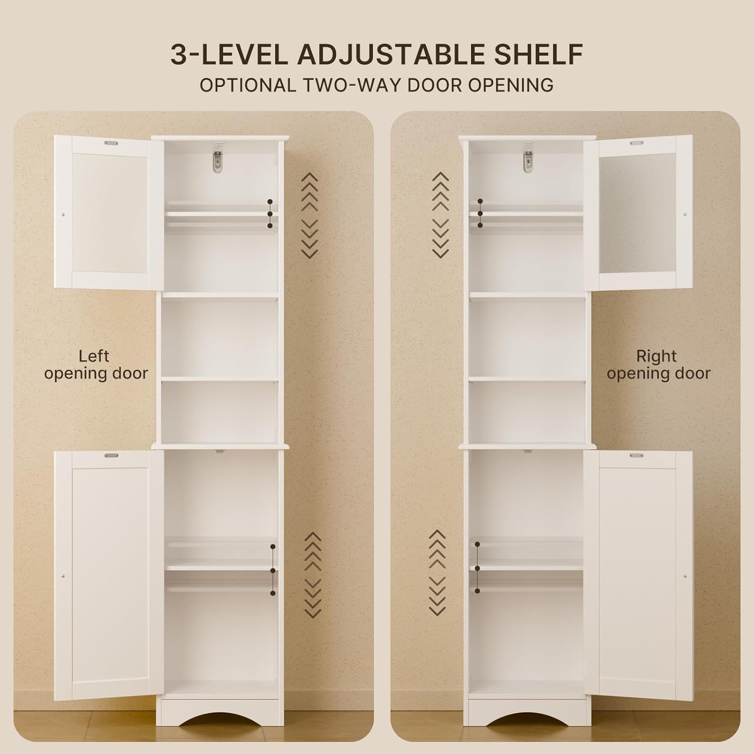 Stable and Safe: The practical bathroom cabinet is made of waterproof MDF for easy cleaning. Magnetic catches enable smooth operation, and the anti-tilt device boosts stability and safety
