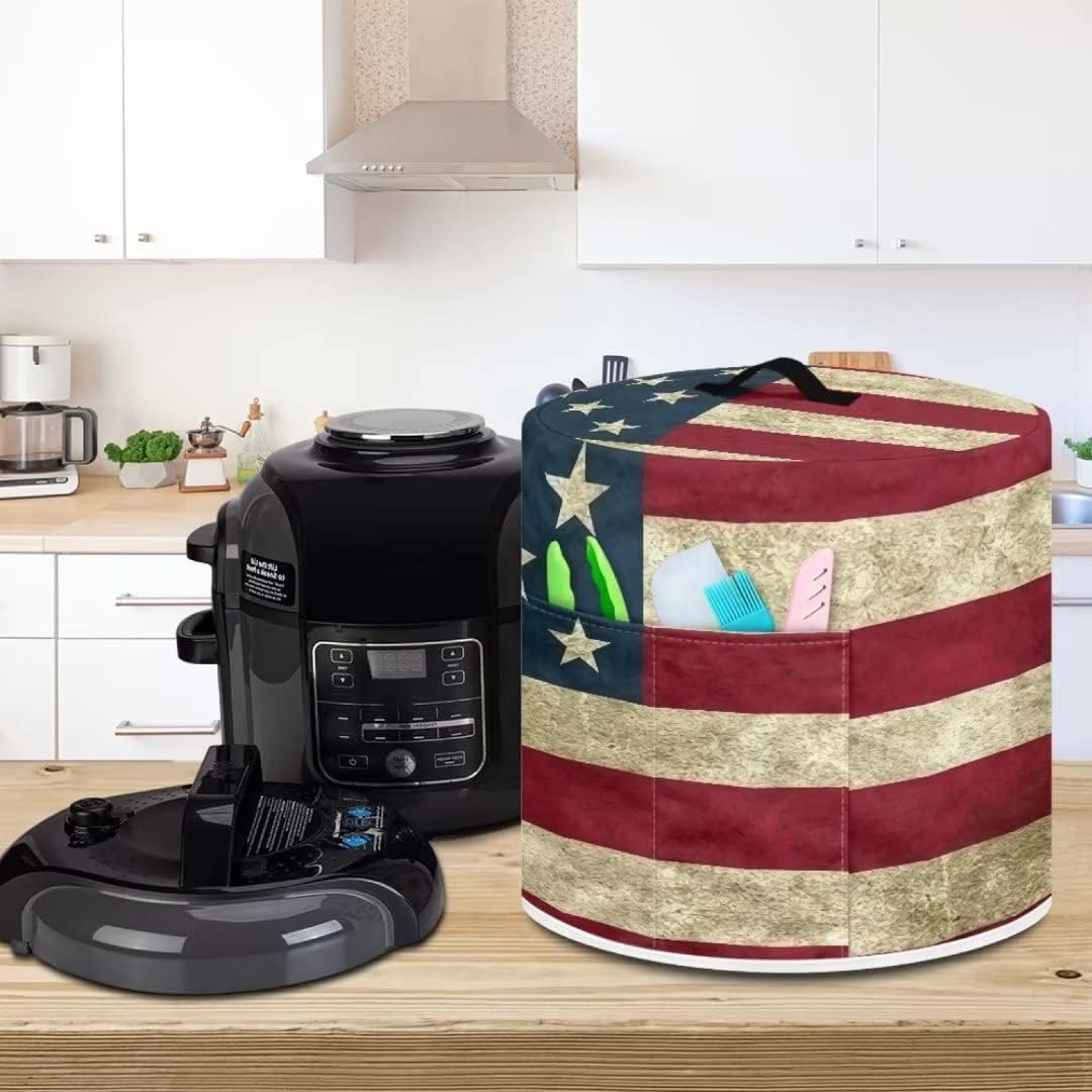 Material–Made of waterproof,sturdy and durable polyester fabric which makes clean appliance dust cover easily.It can stand up nicely without a pressure cooker in it.