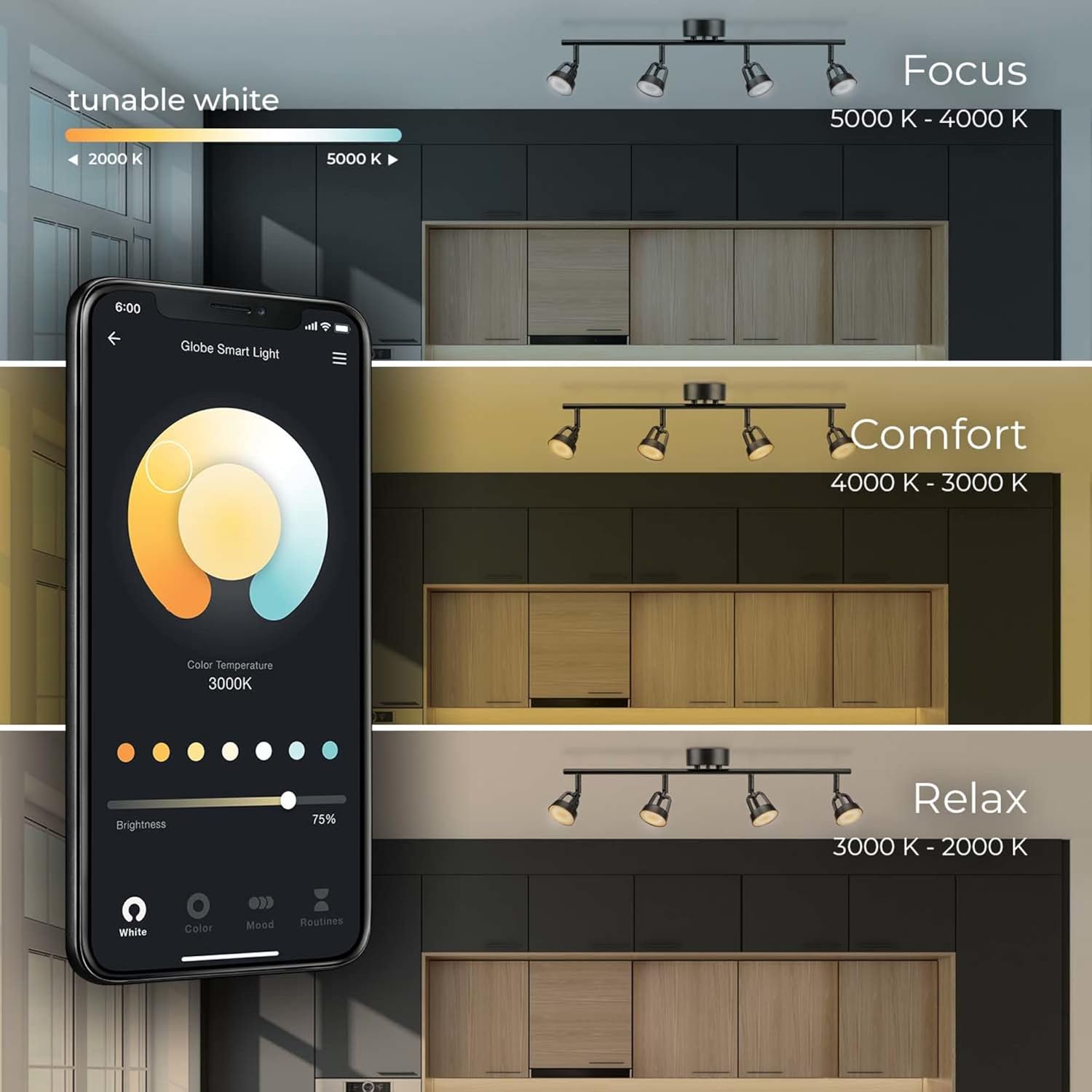 NO HUB REQUIRED: Download the GLOBE SUITE App, connect to your Wi-Fi, and sync your track light. Connect using 2.4 GHz; can use 5 GHz after initial connection.