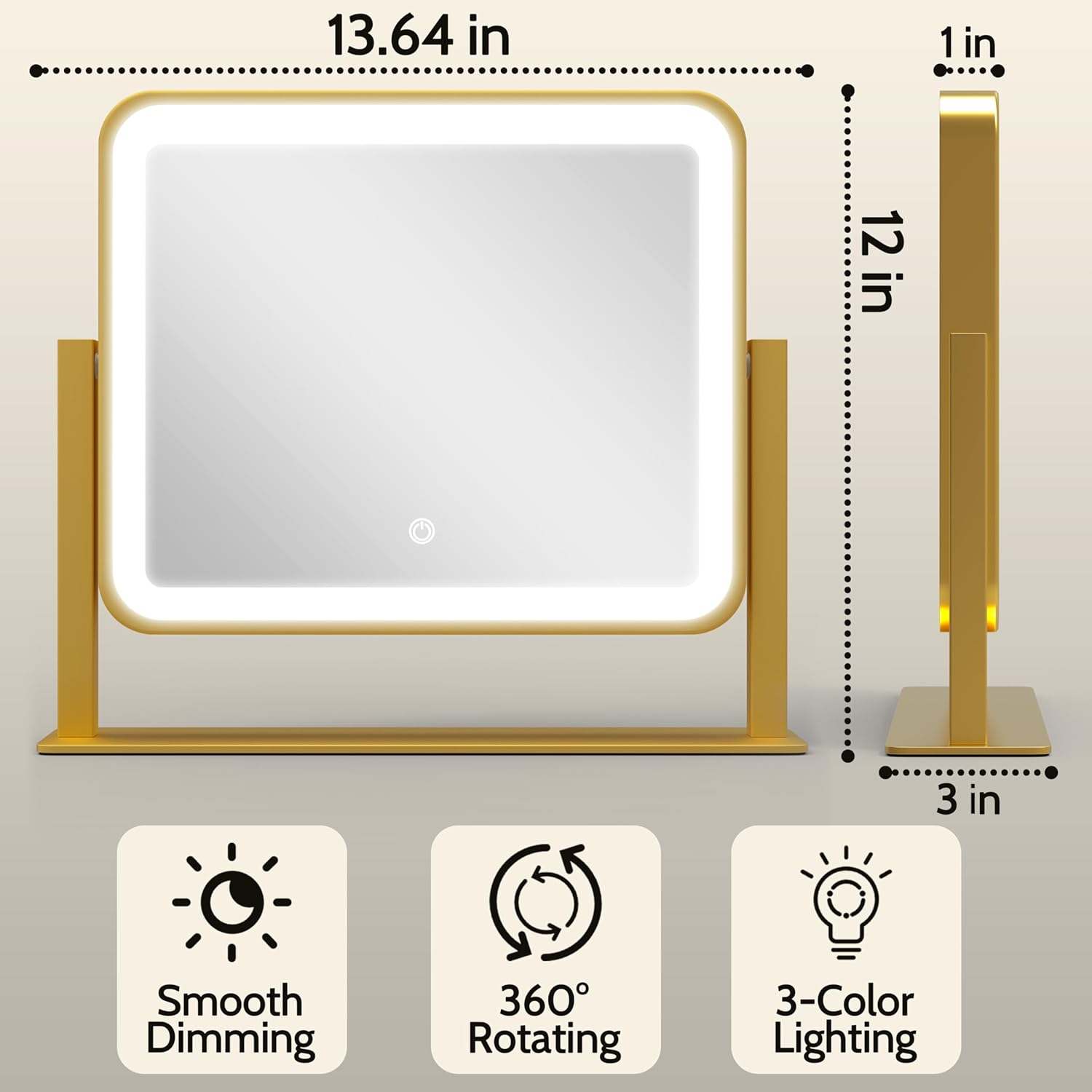 【Smart Dimming & Eye Comfort】 Easily switch between warm, natural, and cool light modes. Adjust brightness from soft to strong with a touch. Built-in eye-protection LEDs ensure a comfortable, glare-free makeup or skincare routine.