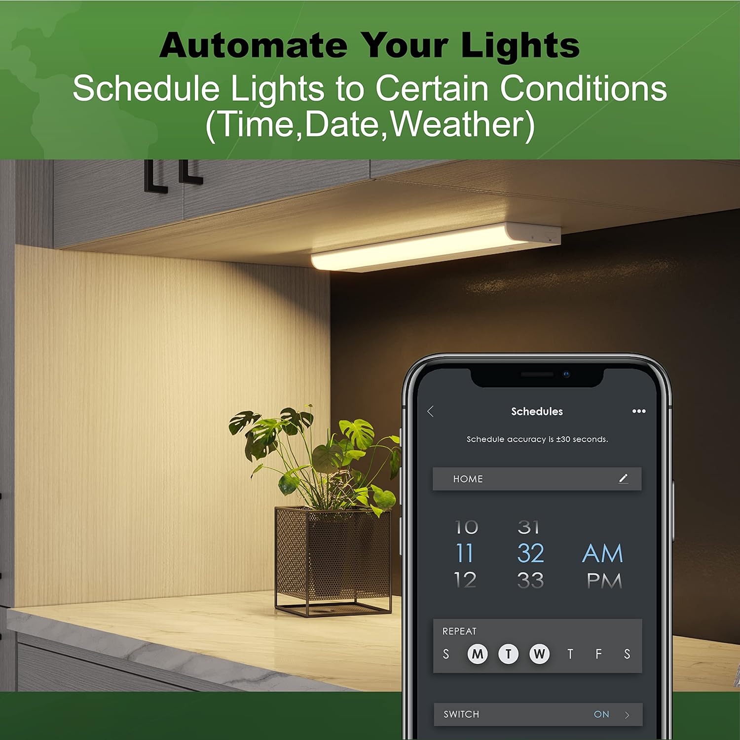 Schedule your lights to turn on or off or brighten or dim at specific times during the day or night