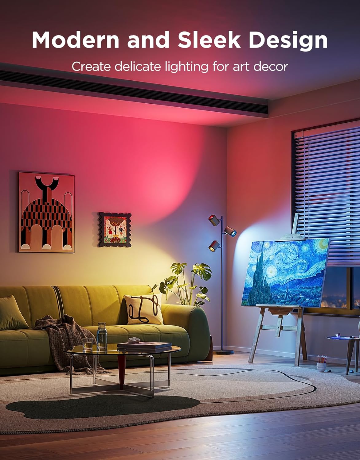 Dynamic Scenes & Customizable Lighting: Transform your space with 64 scene modes, smooth light transitions, and up to 1500 lumens (500 lumens per lamp). Featuring tunable 2700K-6500K color temperature, this floor lamp is an ideal choice for living rooms and beyond.