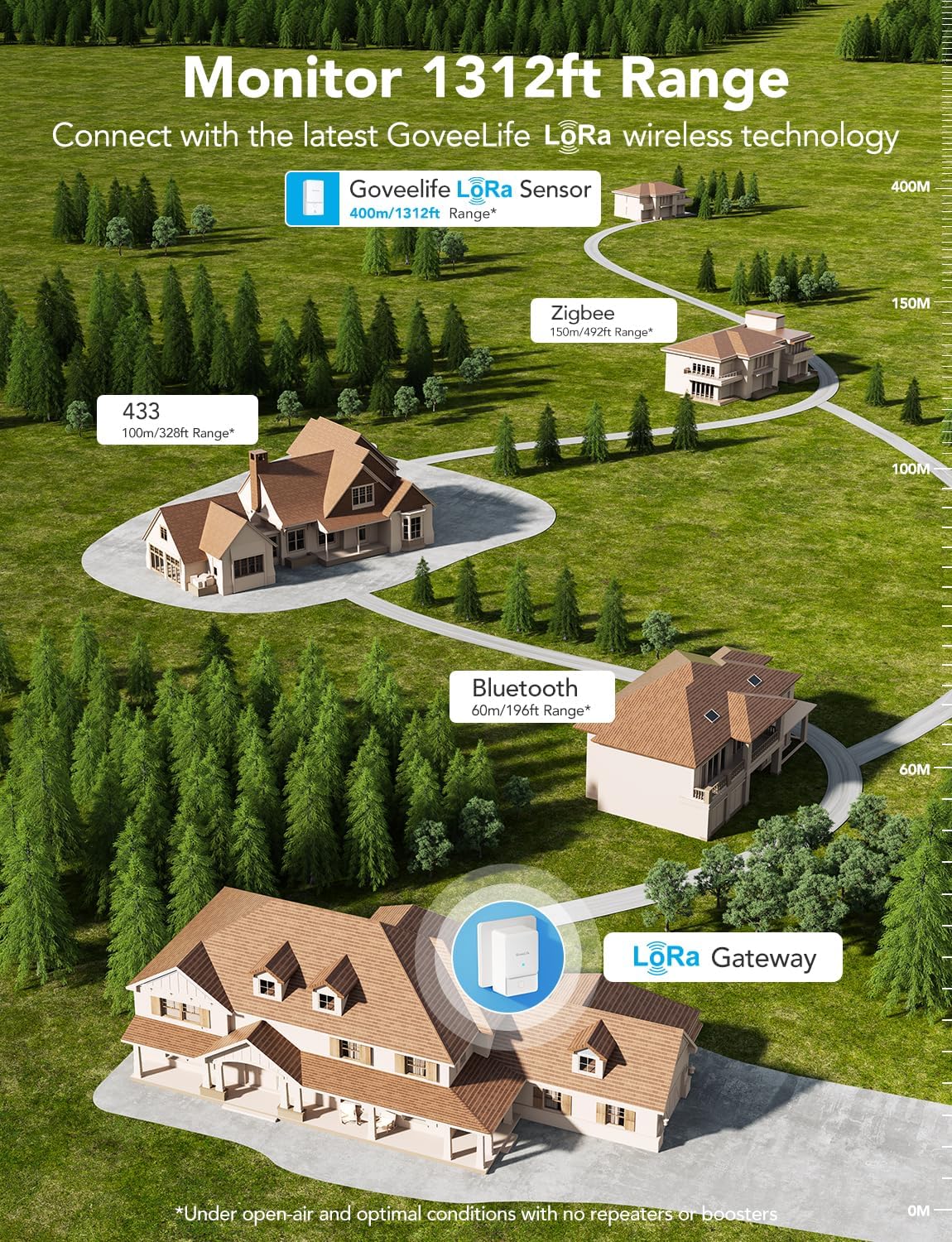 Extremely Long Range: Powered by LoRa technology, the long-range low-power system offers the industry’s longest receiving range (1/4 mile). Areas such as basements and sheds connect up to 100 sensors to deliver product information smoothly.