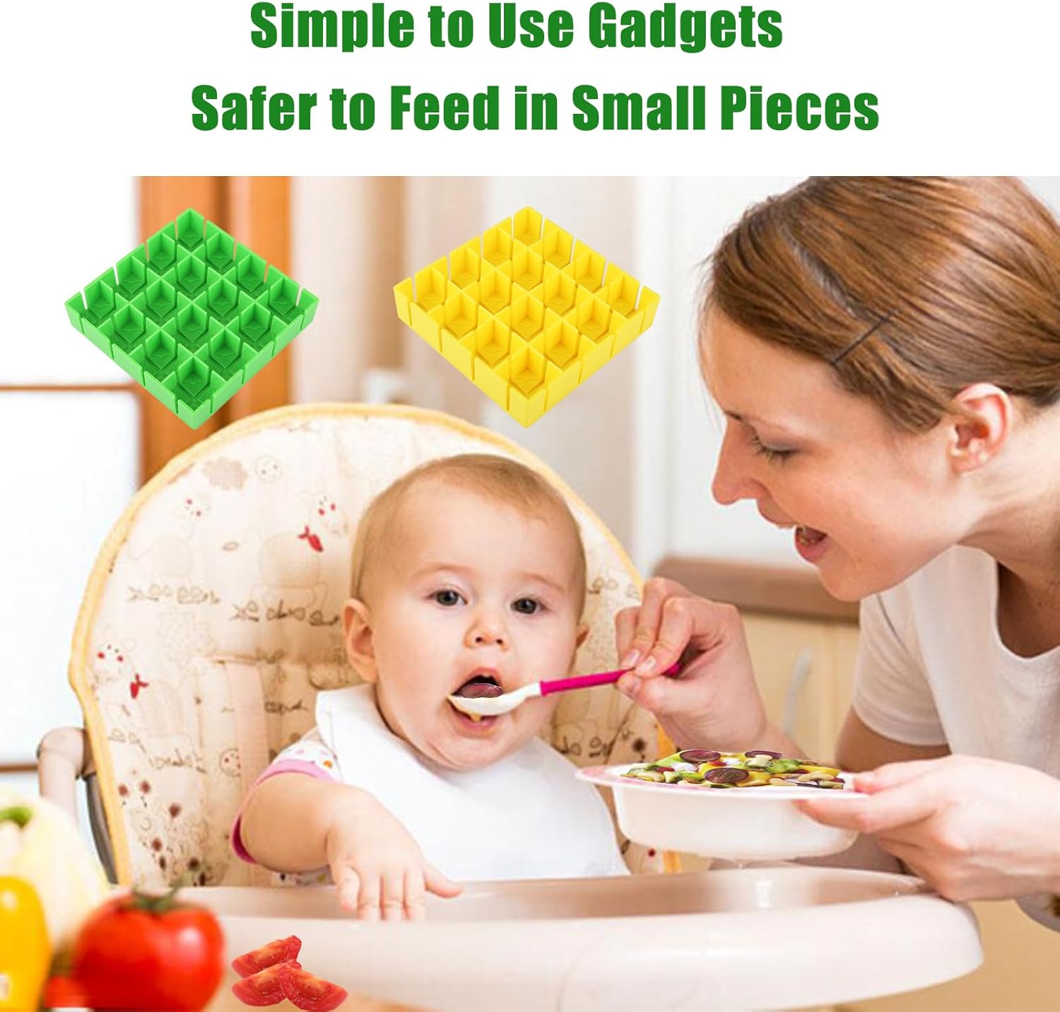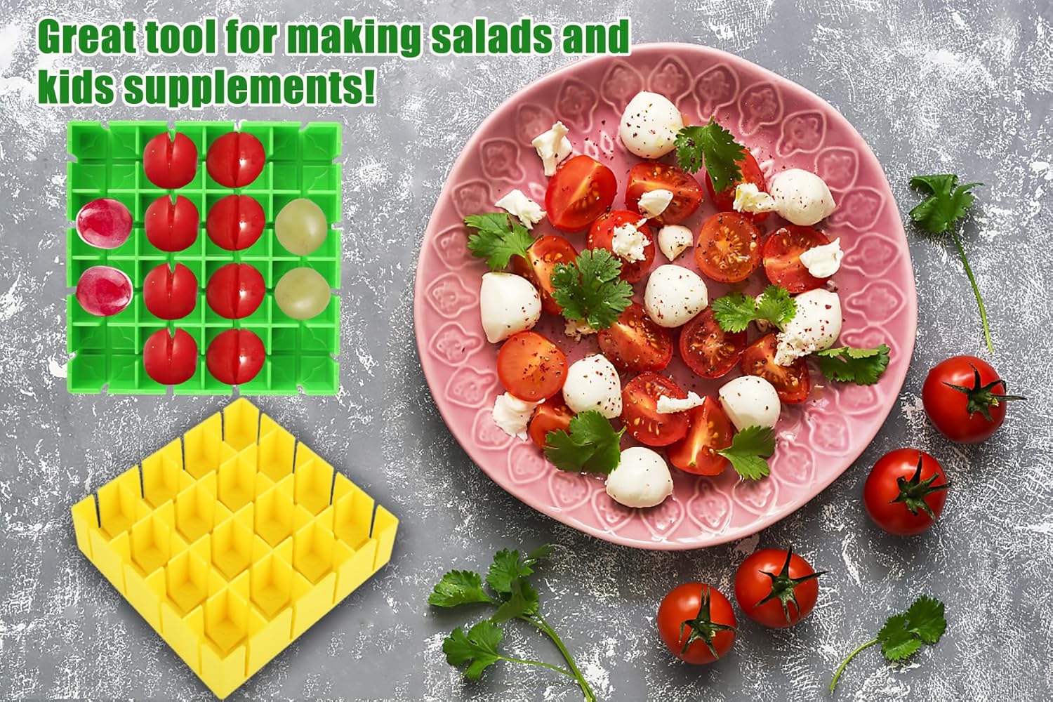 CONVENIENT AND TIME-SAVING TOOL: Slices up to 16 grape or cherry tomatoes less than 1 inch in diameter at a time, with the option to cut in half or quarters for quick and safe slicing