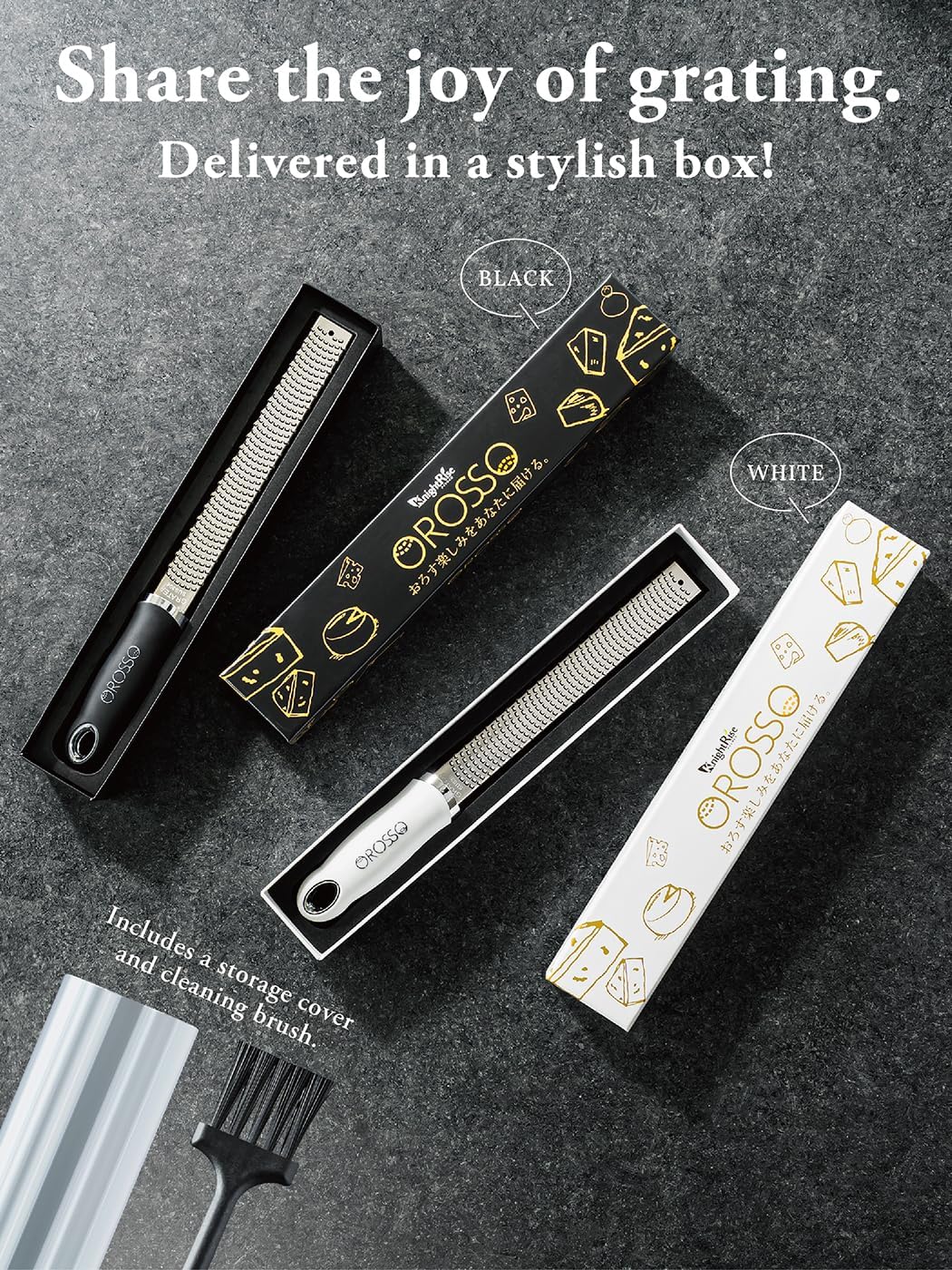 [Renewed in November 2024!] We listened to our customers’ feedback, and made repeated improvements to make it even easier to grate. The blade angle has been adjusted in 0.1 mm increments, making it suitable for a wide range of ingredients, including hard cheese, ginger, garlic, chocolate, and citrus fruits. It brings out the best in your ingredients, greatly expanding the range of dishes you can make.