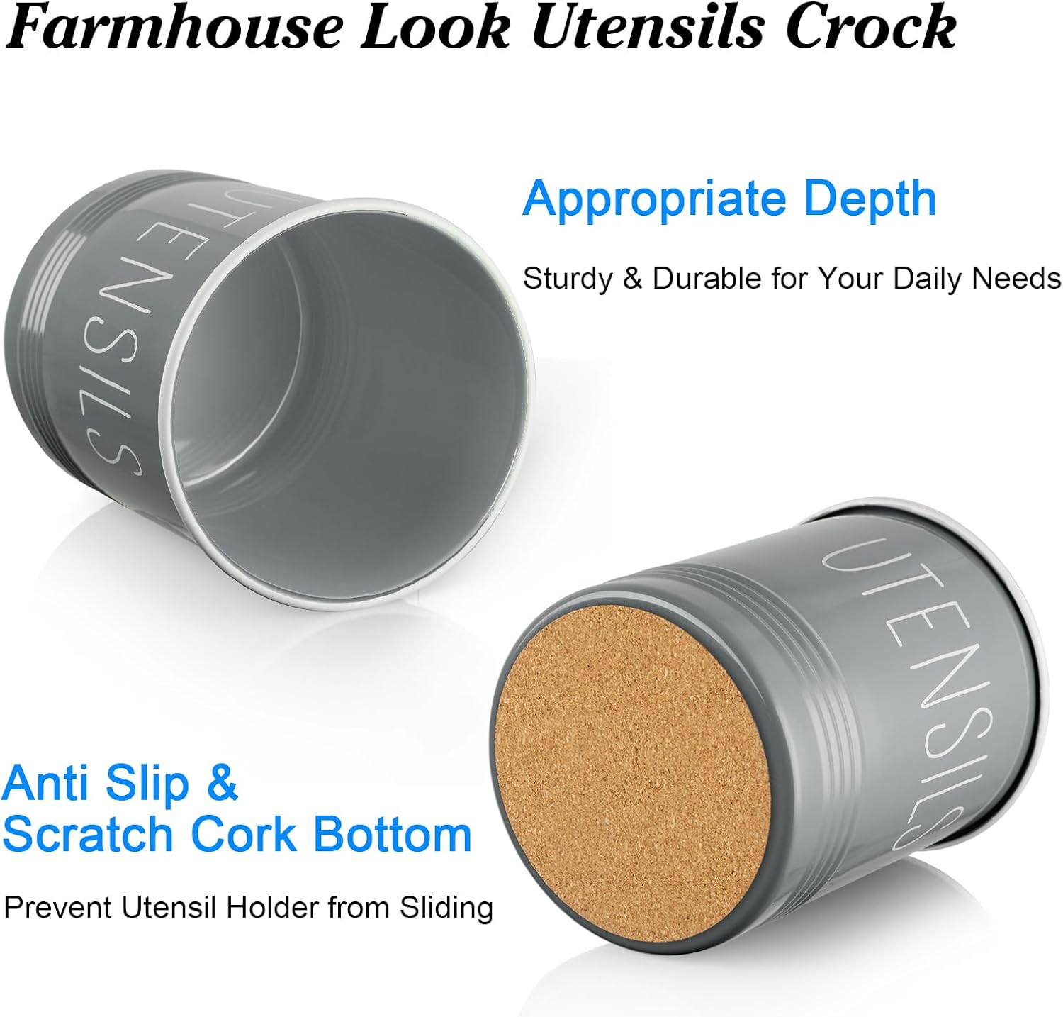 Vintage Stylings for Kitchen Decor: The gray utensil holder with well-printed white written “Utensil”, white highlighting on the edge of the top, and paired the whole shape, which is simple, elegant and classy, lends a charming vintage feel to your rustic vintage designed kitchens.