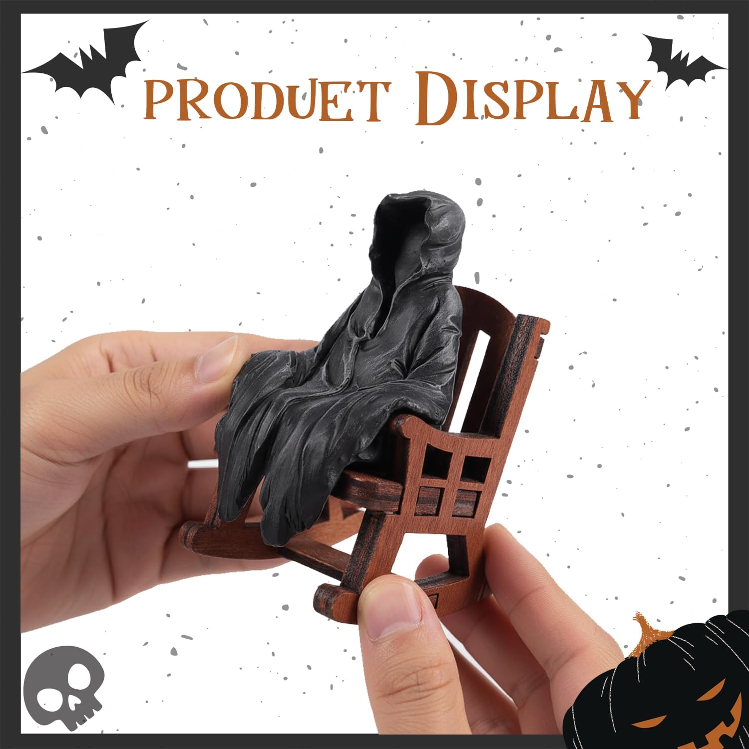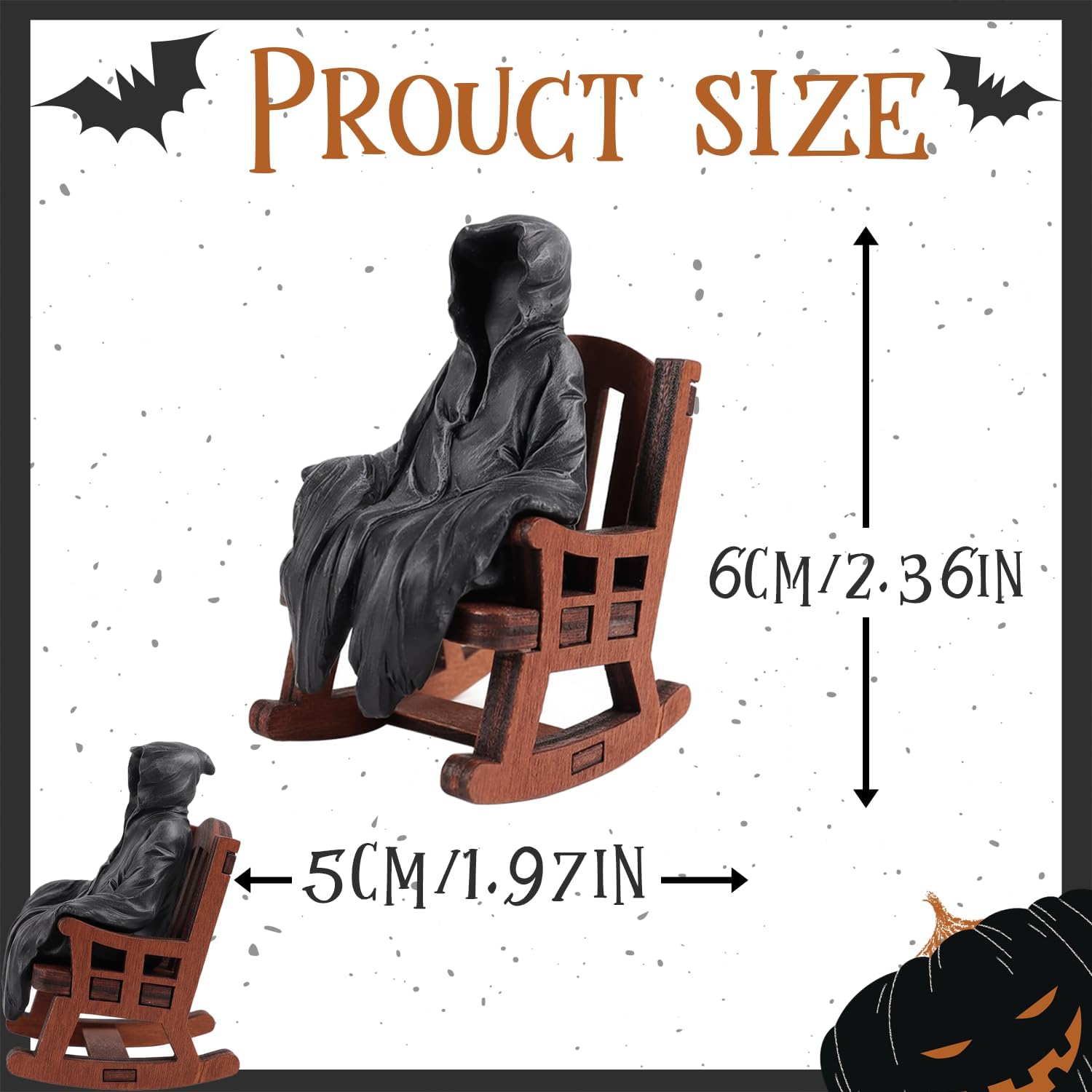Grim Reaper Statue, Resin Gothic Throne Suriel Statue, Goth Acotar Bookshelf Decor Figurine Fantasy, Small Black Ghost Shelves Figure for Halloween Home Garden Sculpture(Sitting in A Chair)
