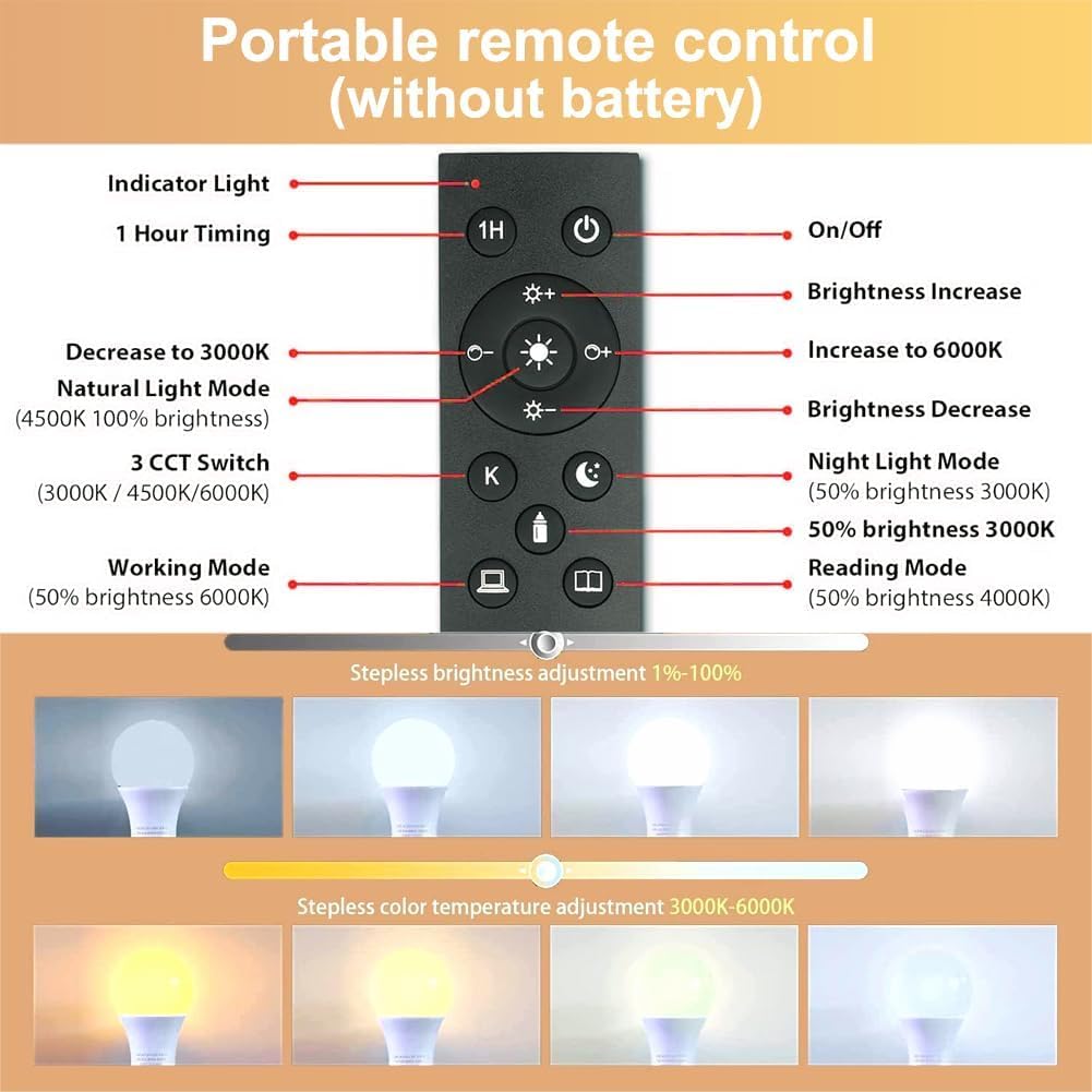 Our light bulbs with remote have no strobe,Stepless dimming (3000K-6500K), the light change is softer, and the eyes are better protected.
