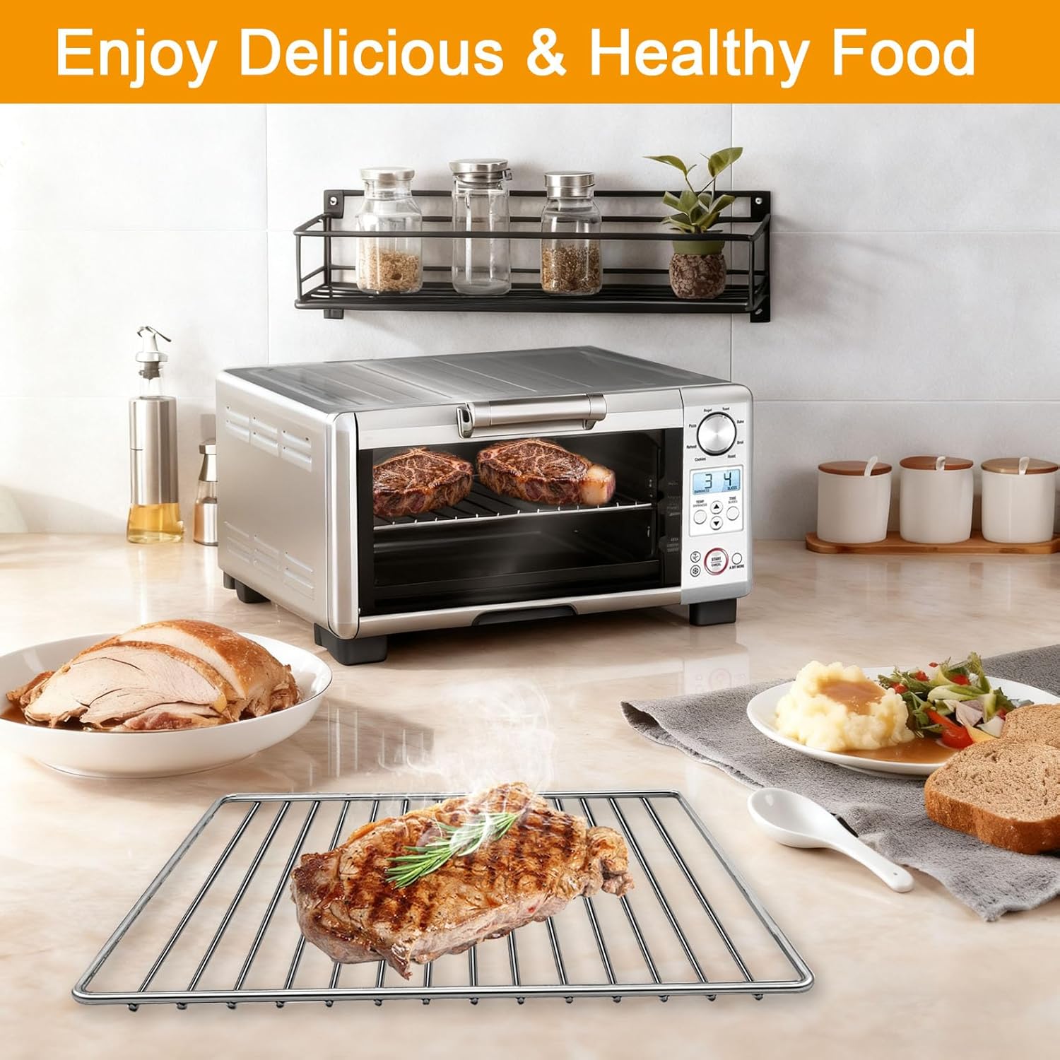 Widely Application:The baking rack is perfect for oven cooking and baking. Great for cooking Chicken, Bacon, Fish, Chicken Wings, Meatball, Meat, Vegetables, Potatoes, Cookies, Cakes, etc. It can also be used as a grill basket to place fruits, vegetables, tableware and cups.It is suitable for holiday gift for friends and family parities. Using the included crisper basket, you can enjoy your favorite fried foods without excess oil or grease, which provides you a healthier diet