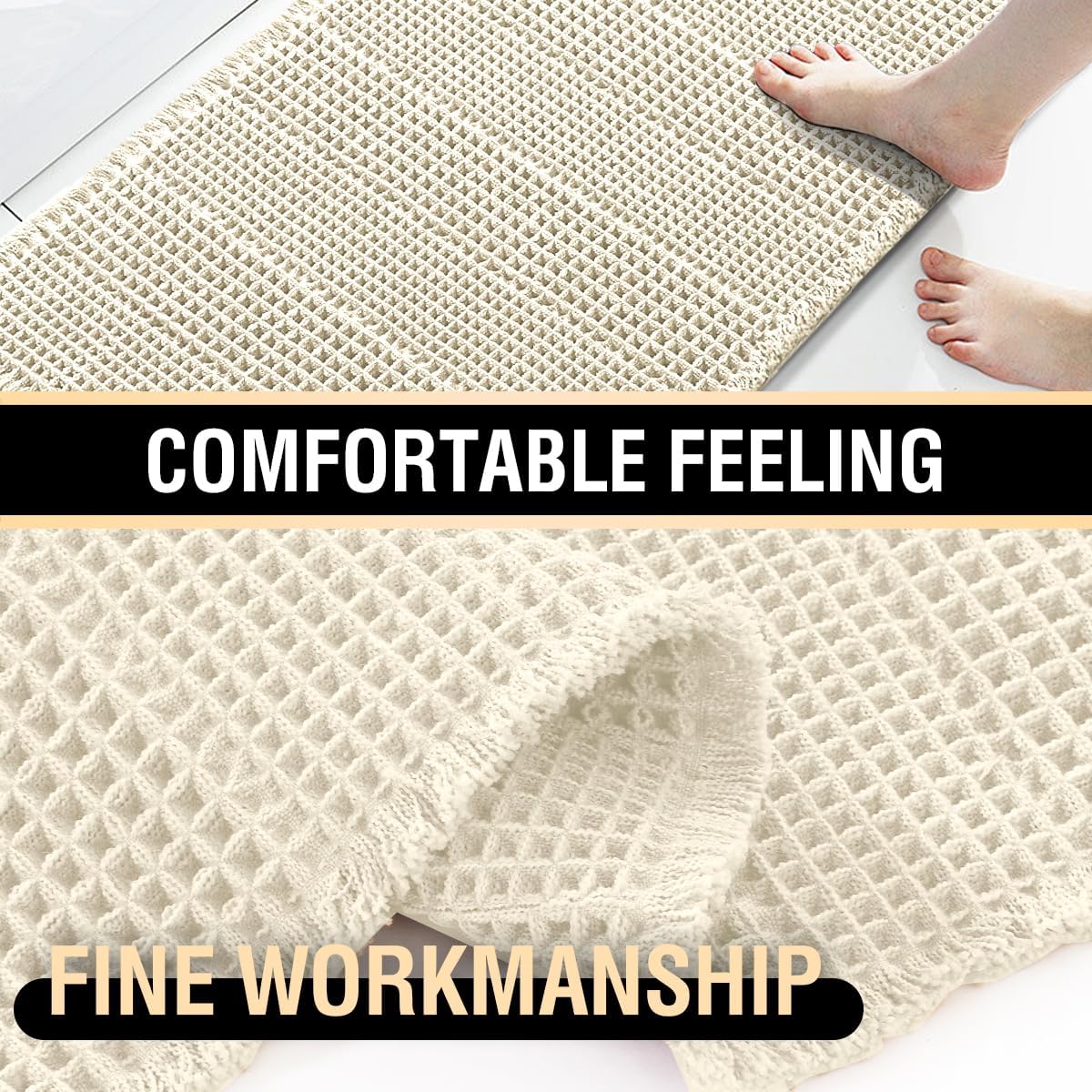Upgraded Waffle Desgin: This bath mat is power-loomed with upgraded yarns-Integrating decoration and durability, make the bath mats amazing soft and cozy like a comfortable quilt protector for your feet