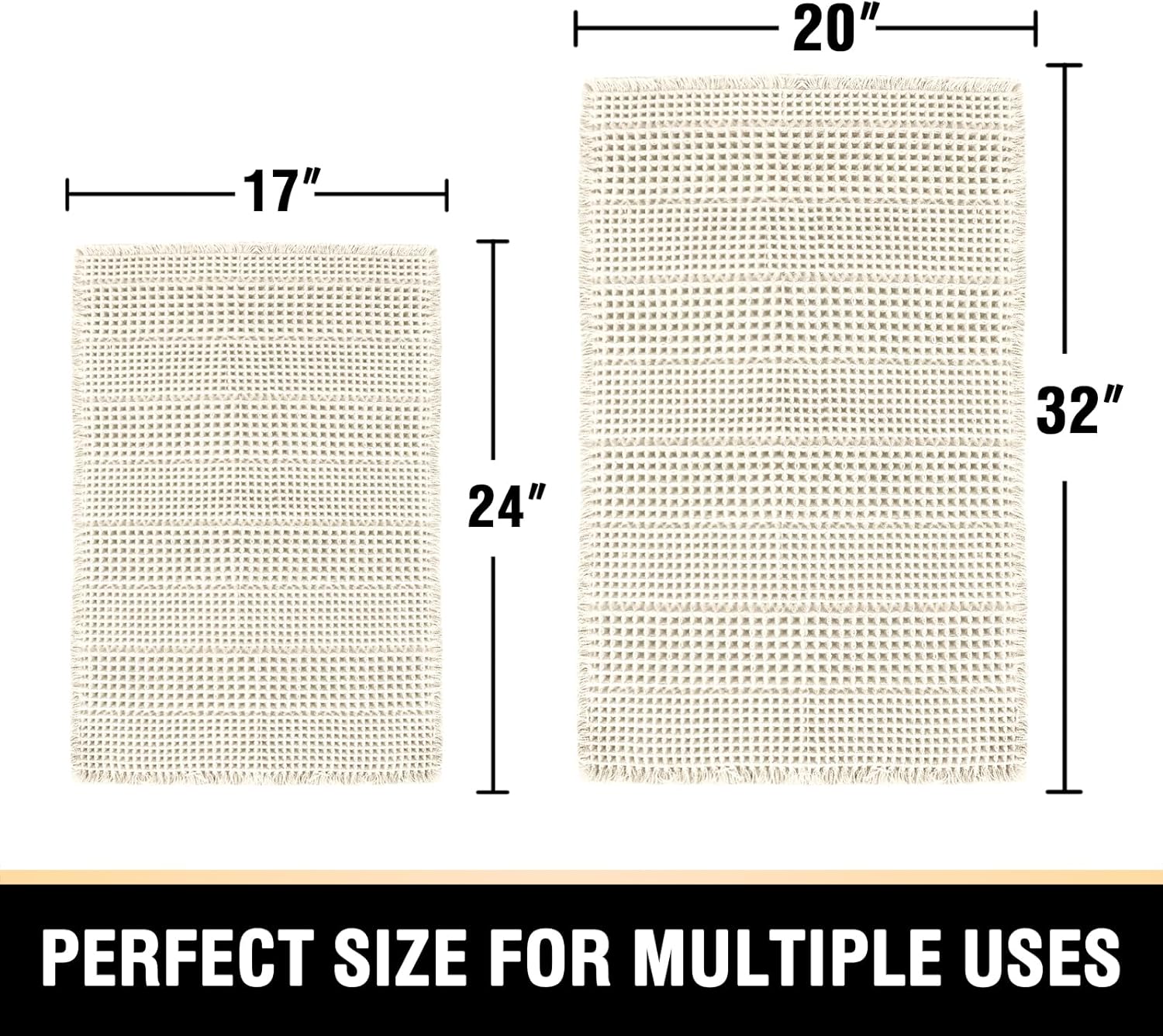 VIBRANT DECOR: These decorative waffle bath rugs lends a beautiful rich decor element to your bathroom, bring charming and fantastic feeling for your family. Playful and neutral colors, multiple sizes are essential for any style spaces