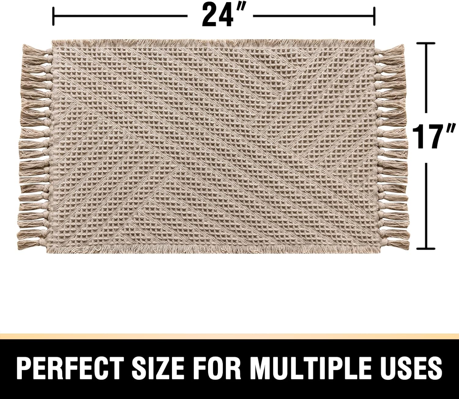 UNIQUE WAFFLE TASSELS DESIGN: This bath mat is power-loomed with upgraded yarns-Integrating decoration and durability, make the bath mats amazing soft and cozy like a comfortable quilt protector for your feet. Differ from other ordinary bath mat, the tassels makes this mat have more Design sensed.