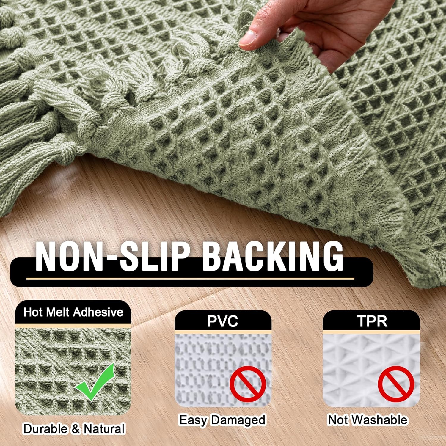 NON SKID: With updated version slip-resistant Hot Melt Backing. Offering good traction and grip on smooth surfaces, that ensures stability and prevents slips and falls. The BACK label distinguishes the front from the back for easy placement