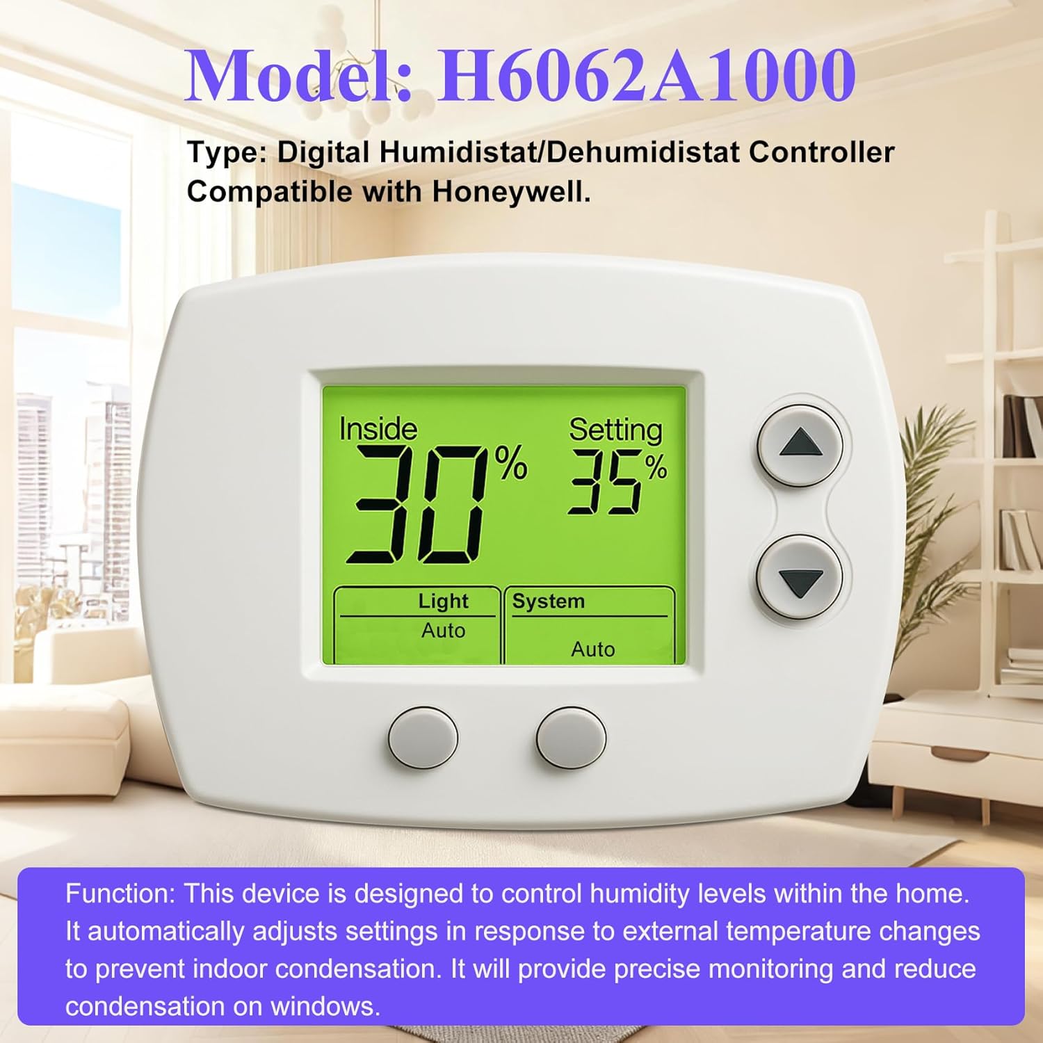 [Energy efficient]: The H6062A1000 home humidity controller is compatible with the H6062A1000 Digital Humidistat and features an energy-saving design with optimized performance to reduce energy consumption. This new energy-saving technology can effectively help you reduce your energy bills.