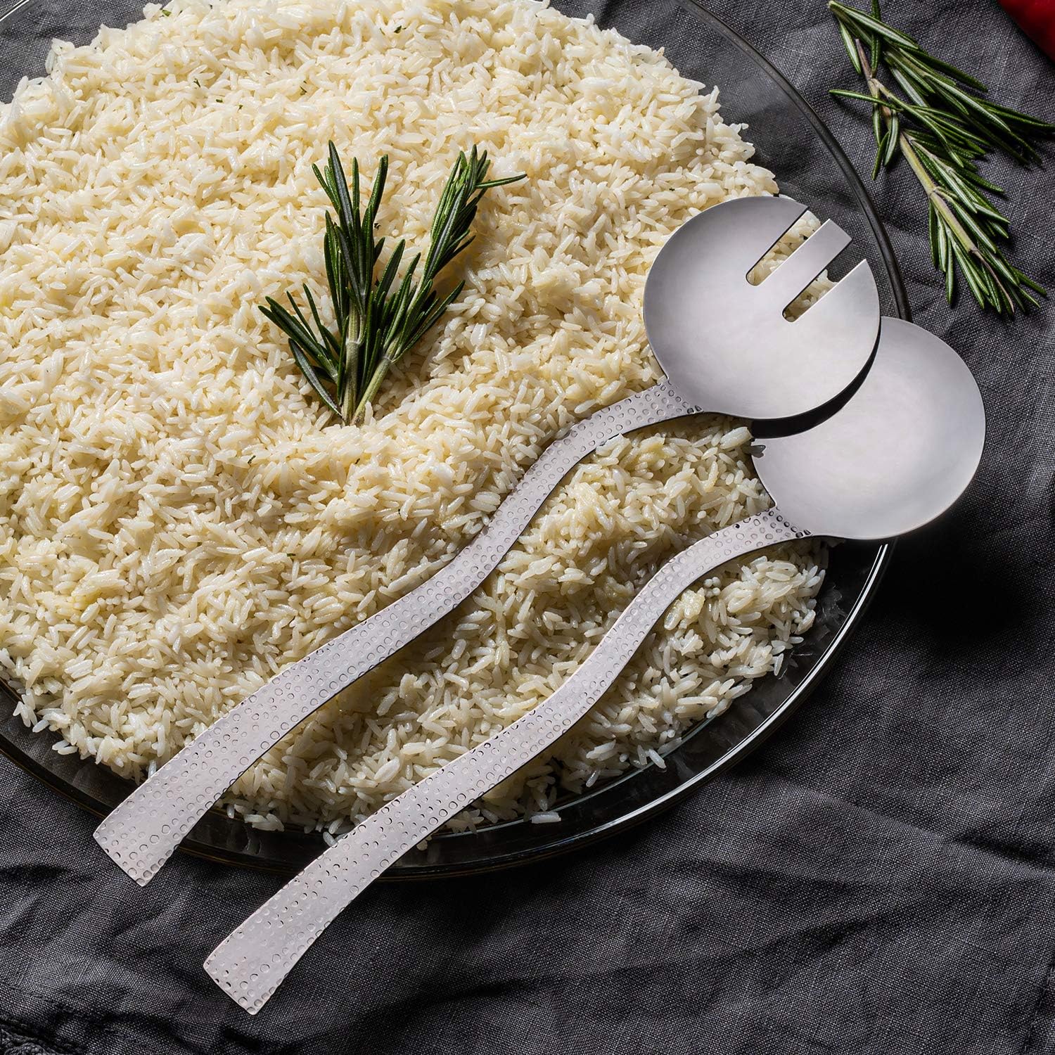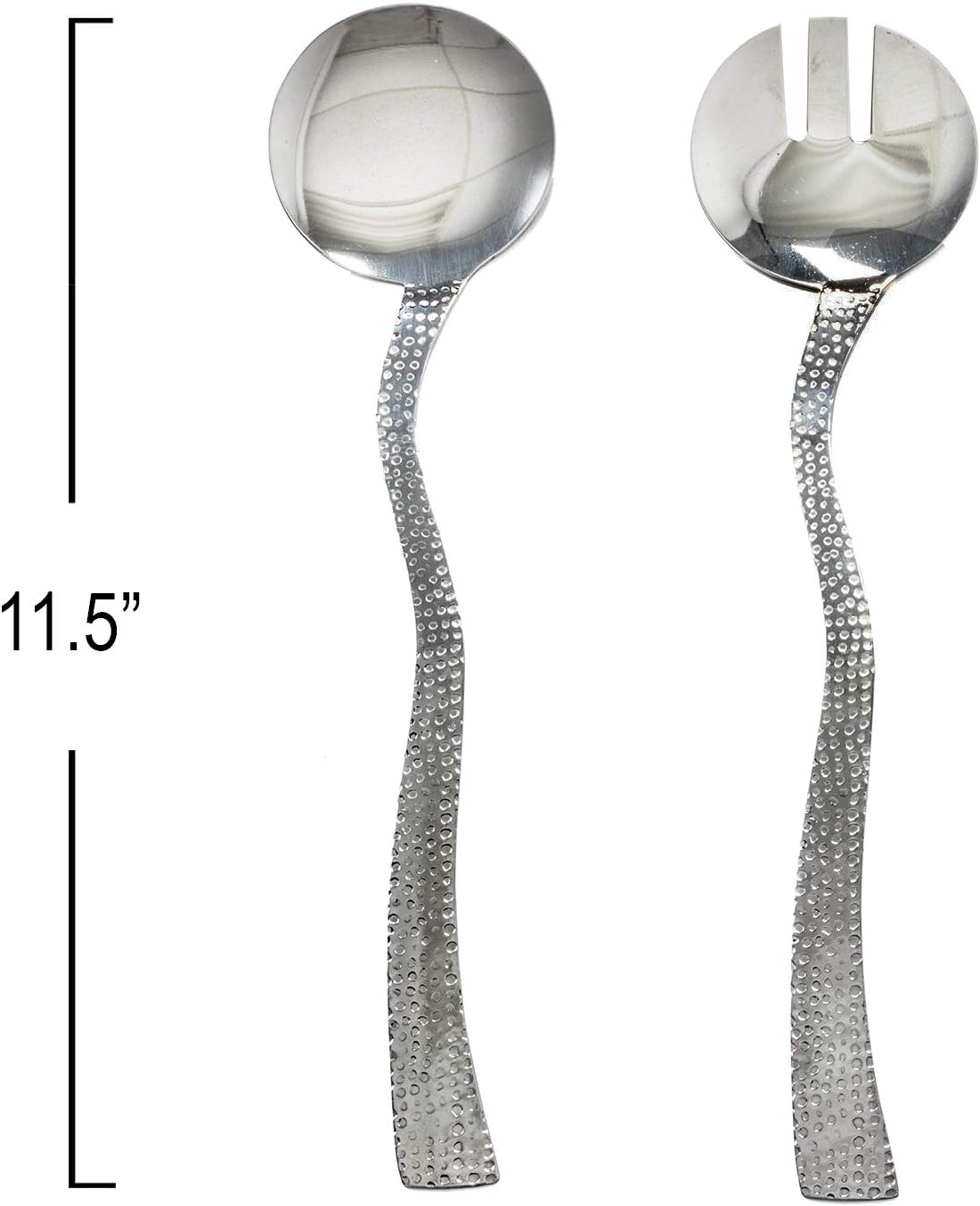 This serving utensil set includes a stainless steel spoon and fork, and is perfect for a trendy effortless look. Serving spoons measure 11.5 inches.