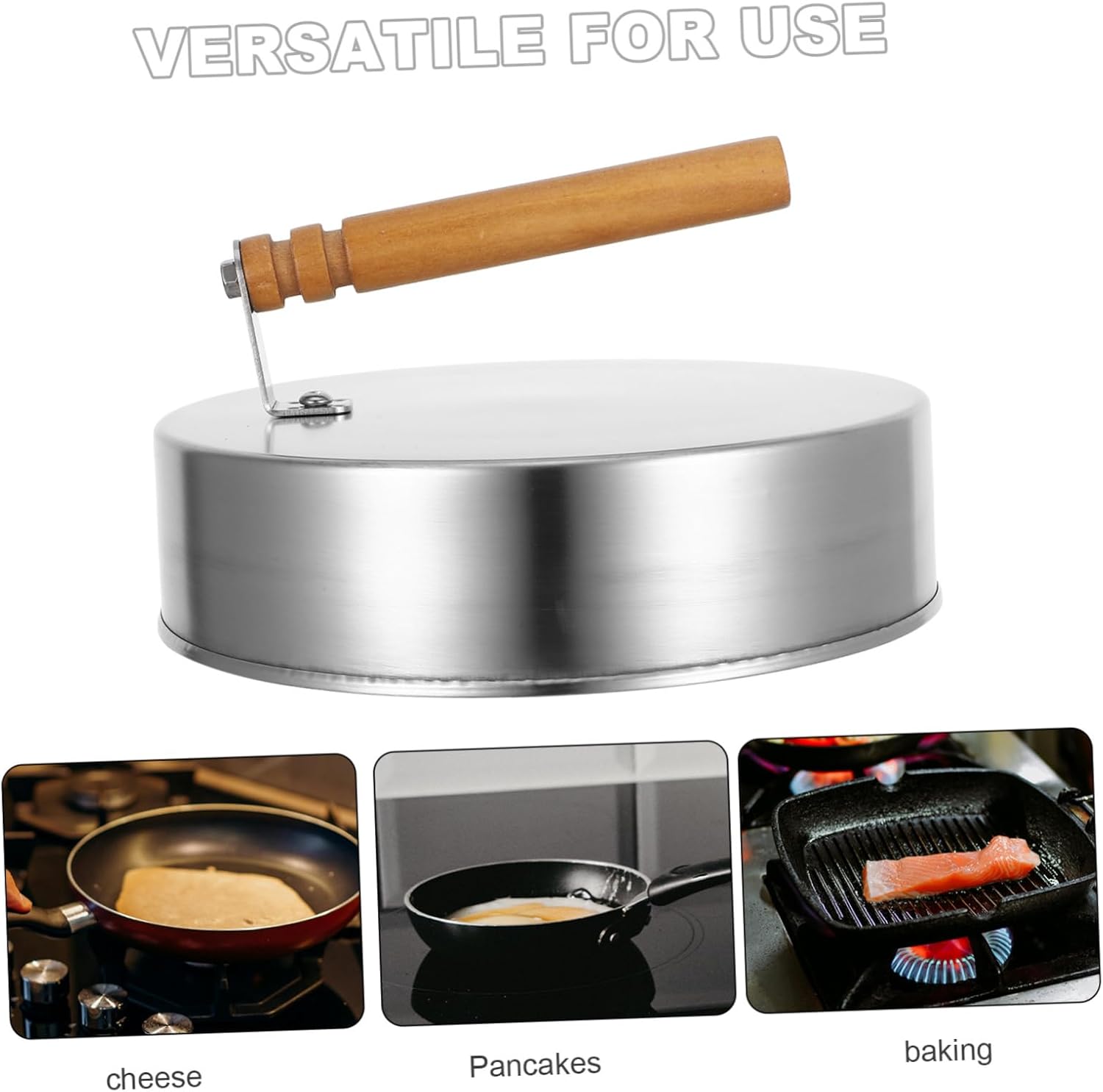 Sturdy stainless steel: made from sturdy stainless steel, wood, this basting cover is built to withstand frequent use, ensuring durability,griddle grill accessory for cheese melting,stainless steel cheese melting cover