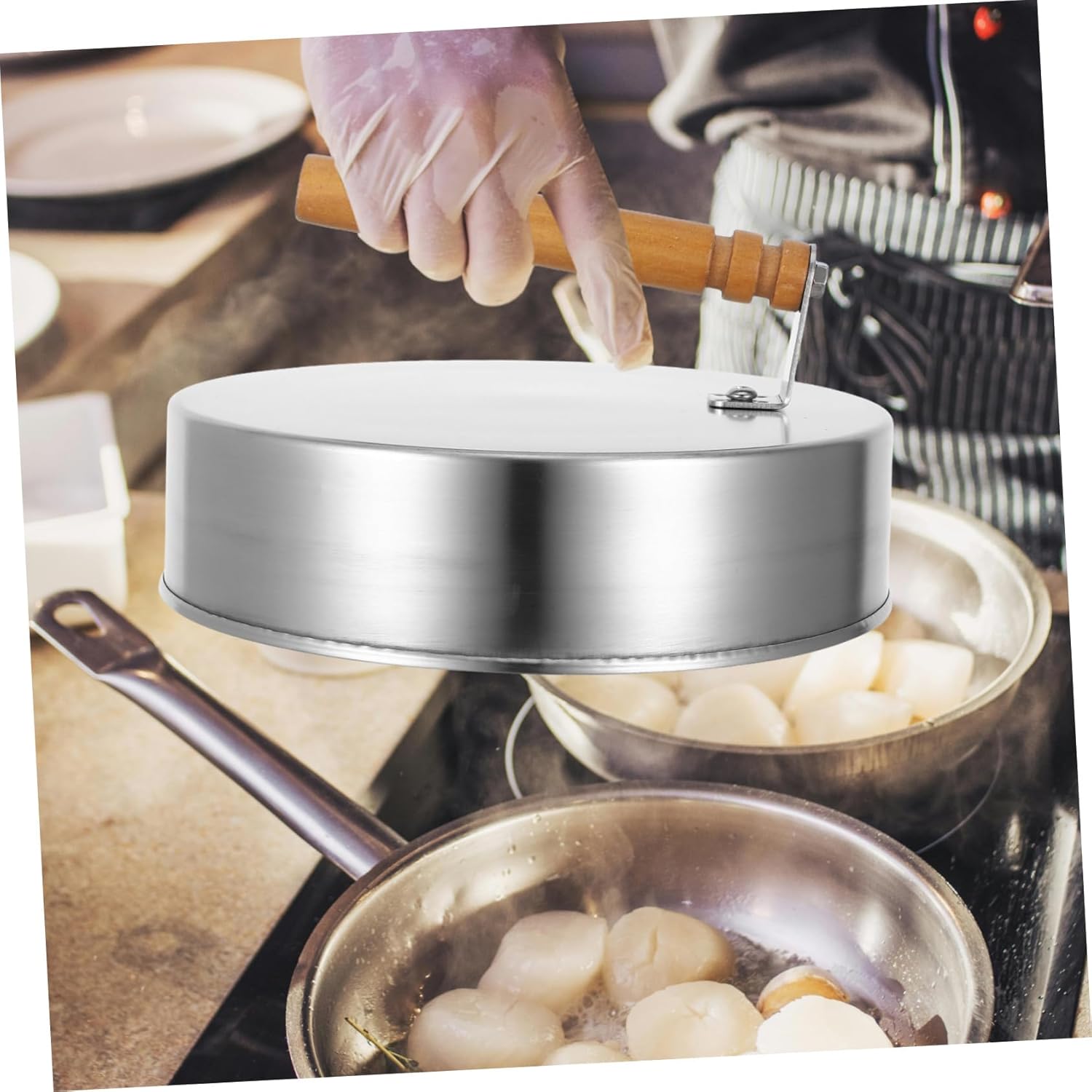 -Sturdy construction: made from sturdy stainless steel, wood, this round basting cover is built to last and withstand high temperatures steaming lid for bbq
