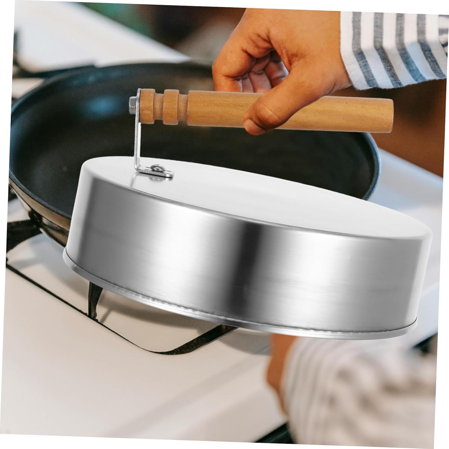 Sturdy construction: made from sturdy stainless steel, wood, this round basting cover is built to last and withstand high temperatures,stainless steel cheese melting dome,household pot lid