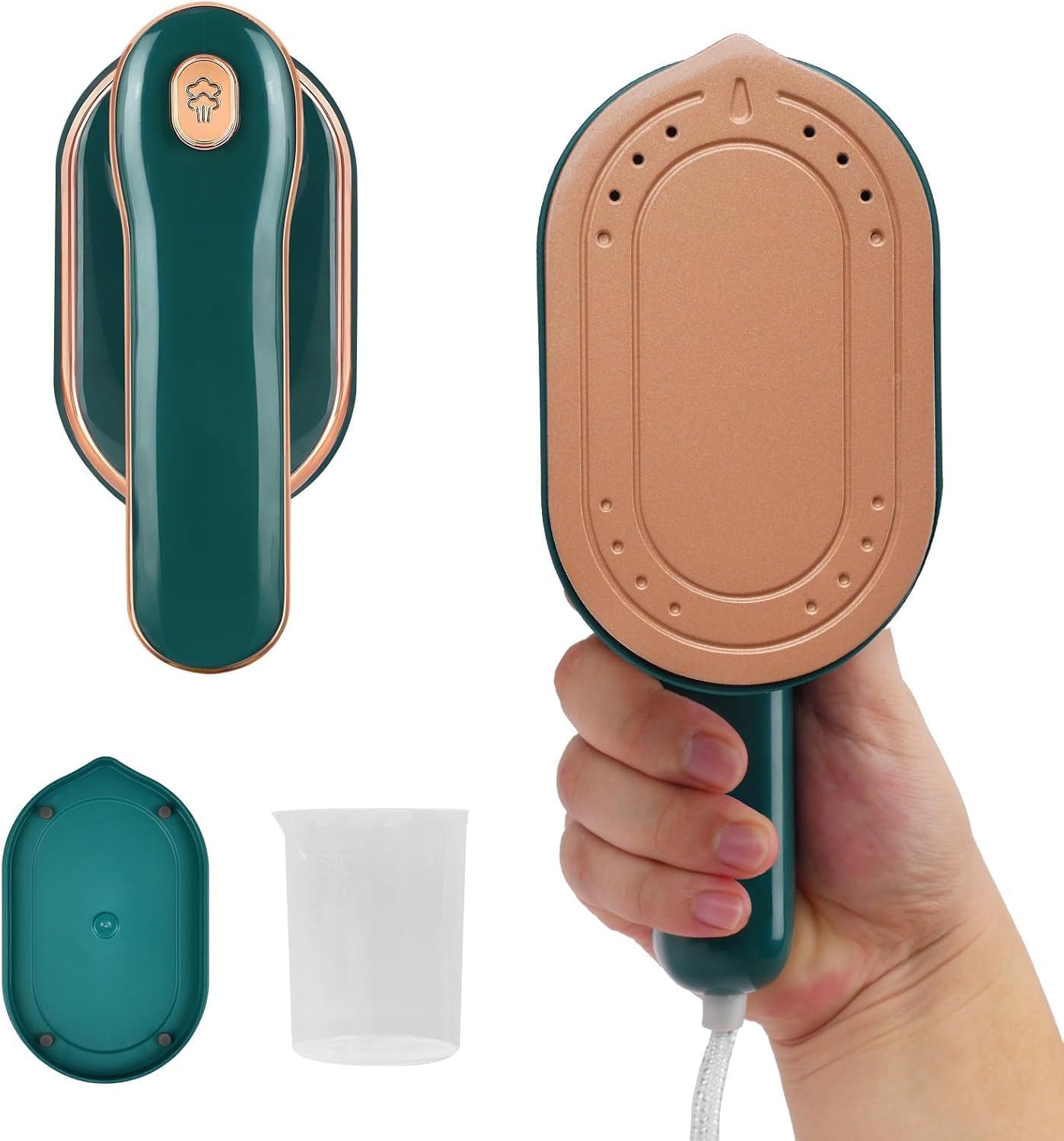 PORTABLE DESIGN: Compact and lightweight handheld steamer perfect for travel and home use, featuring an ergonomic green exterior for comfortable handling