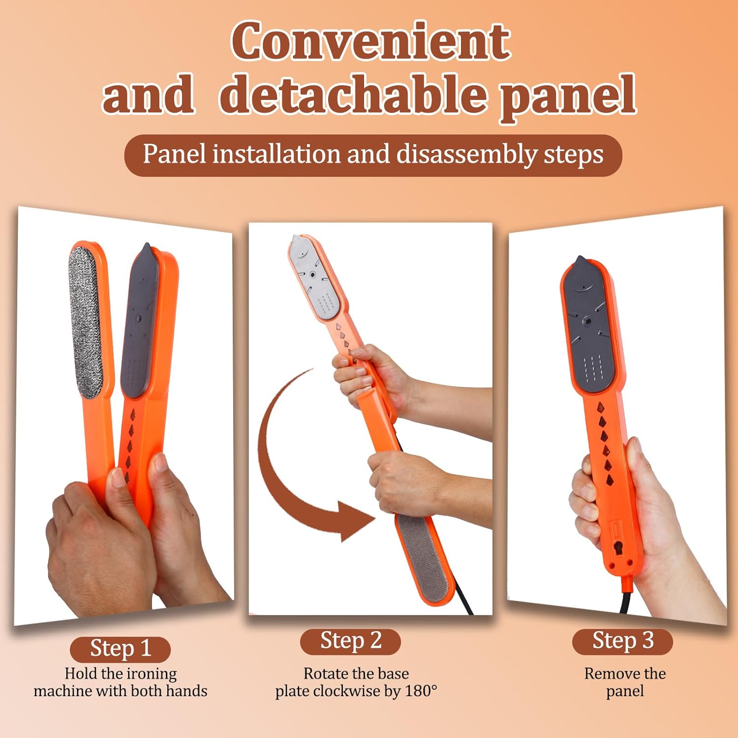 Yes, it can be removed. Rotate 180° and easily take off the brush plate, making the iron more convenient and effortless to use. A brush can easily remove hair from clothes.