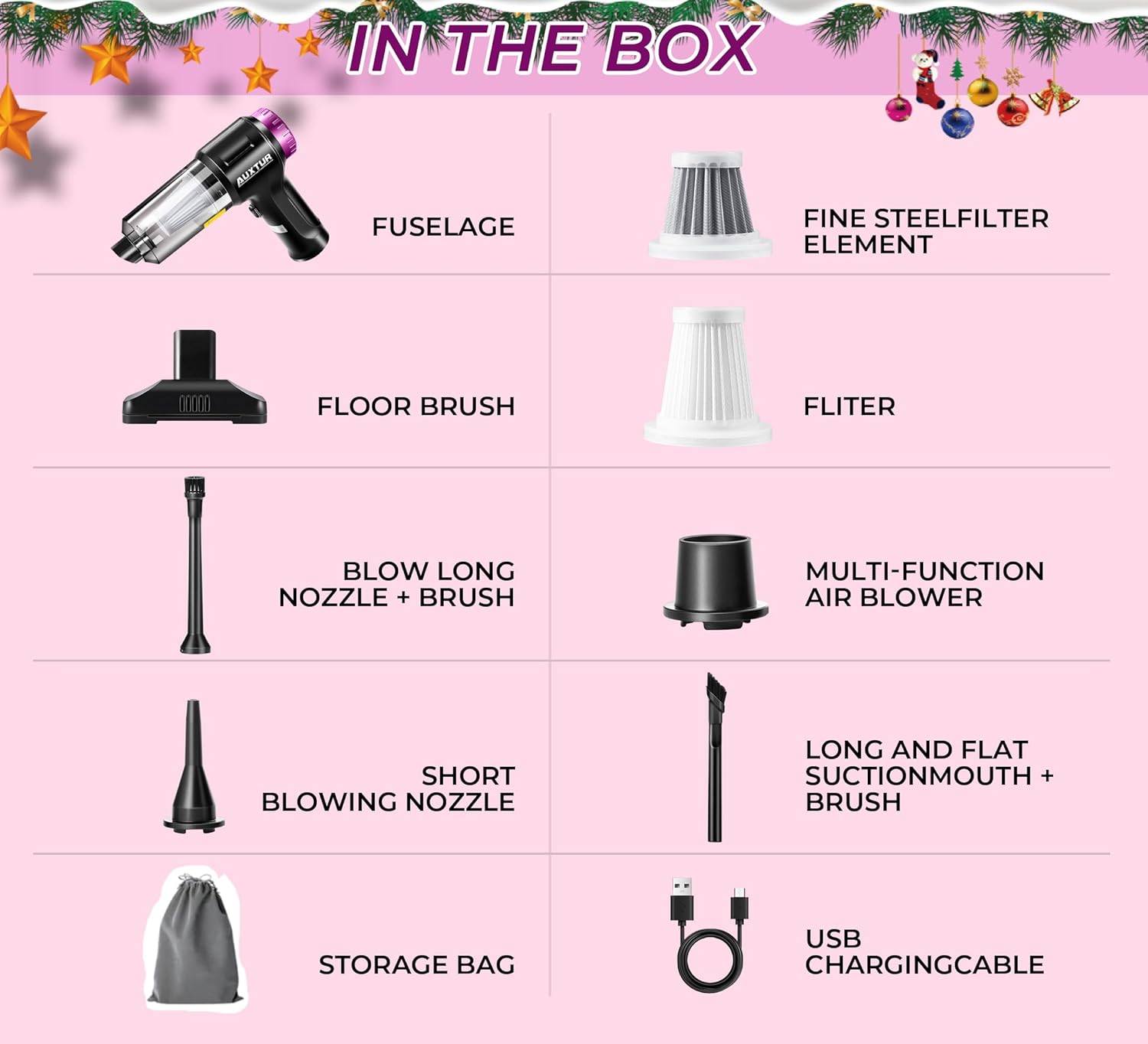 Whether you want to clean the car or the sofa, whether you want to blow up balloons, inflate beds, or even raft, the AUXTUR 3 in 1 vacuum cleaner can handle it very well!