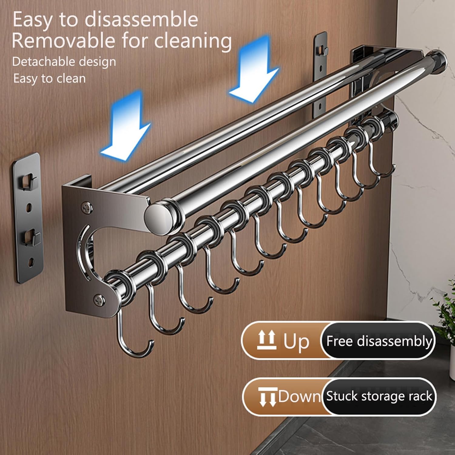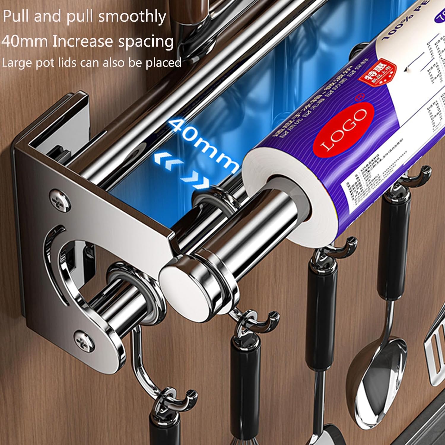 Made from space aluminum and carbon steel, this wall-mounted kitchen utensil rack is scratch-resistant and extremely durable.