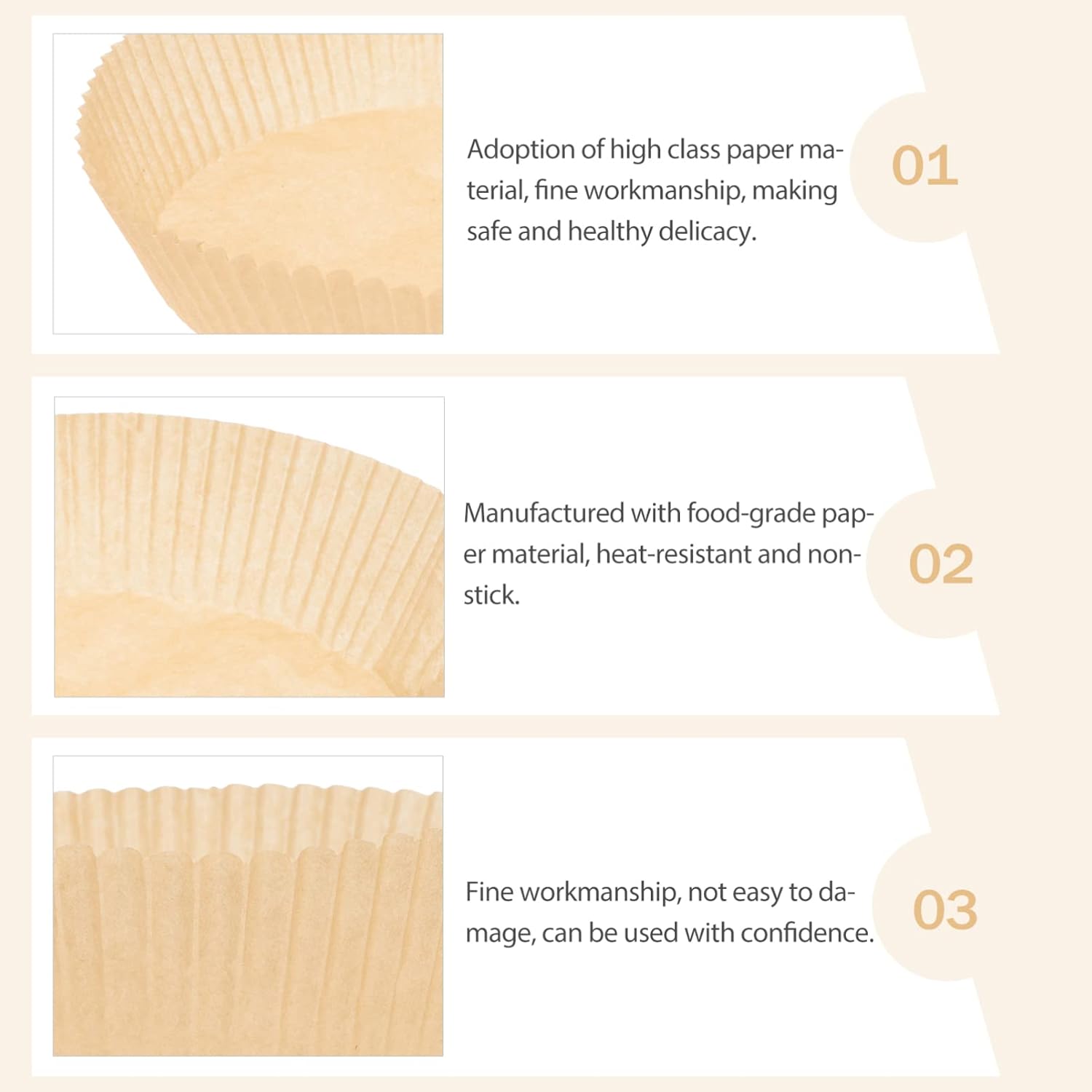 Air fryer disposable paper liners:made of paper for very safe to use, giving you a better using experience than other baking papers,heat-resistant baking liners