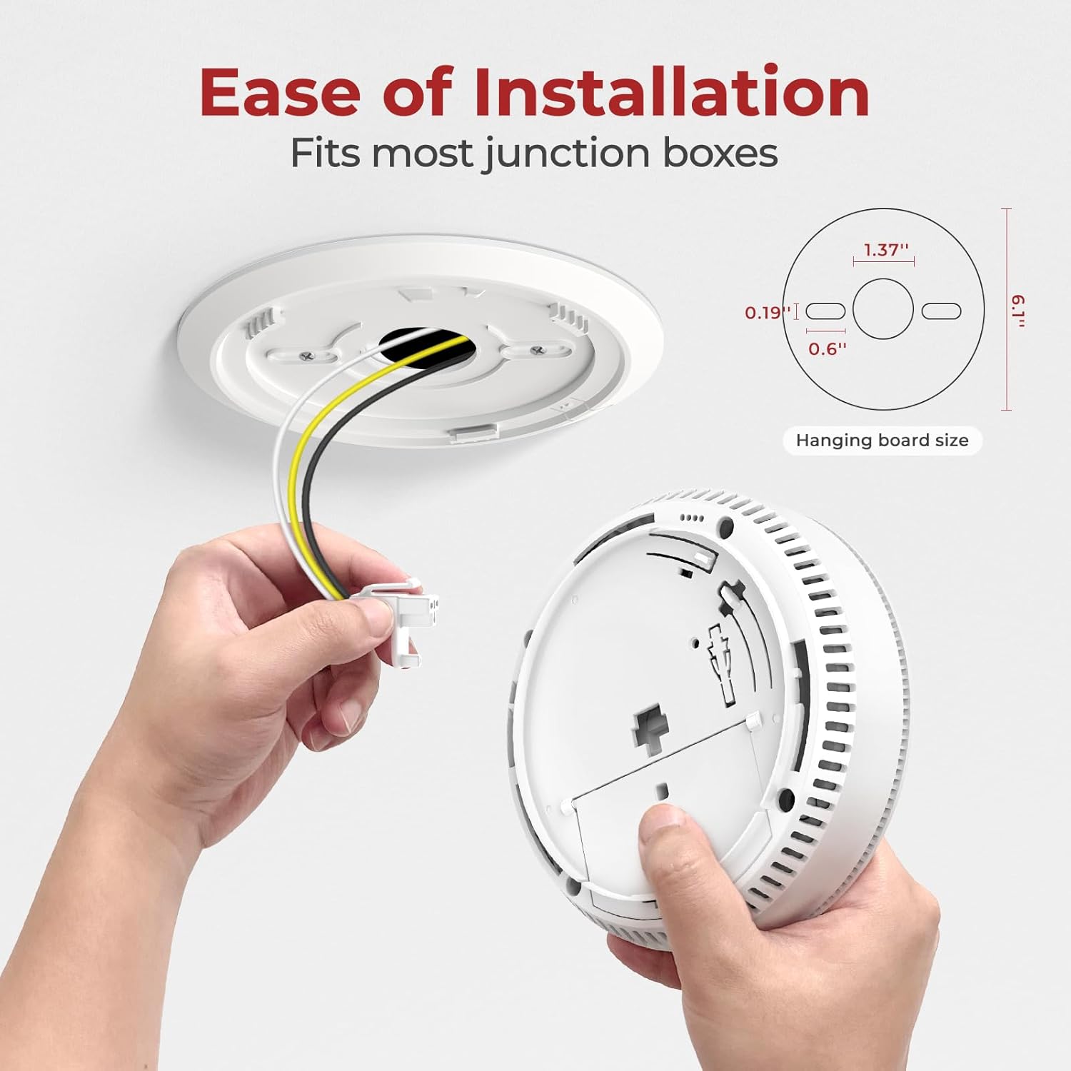 SELF-CHECK-FUNCTION:The wired smoke and carbon monoxide detector will automatically detect internal components every 80 seconds,,sensor,circuits,Ensure that the device is always working properly and protect the safety of you and your family