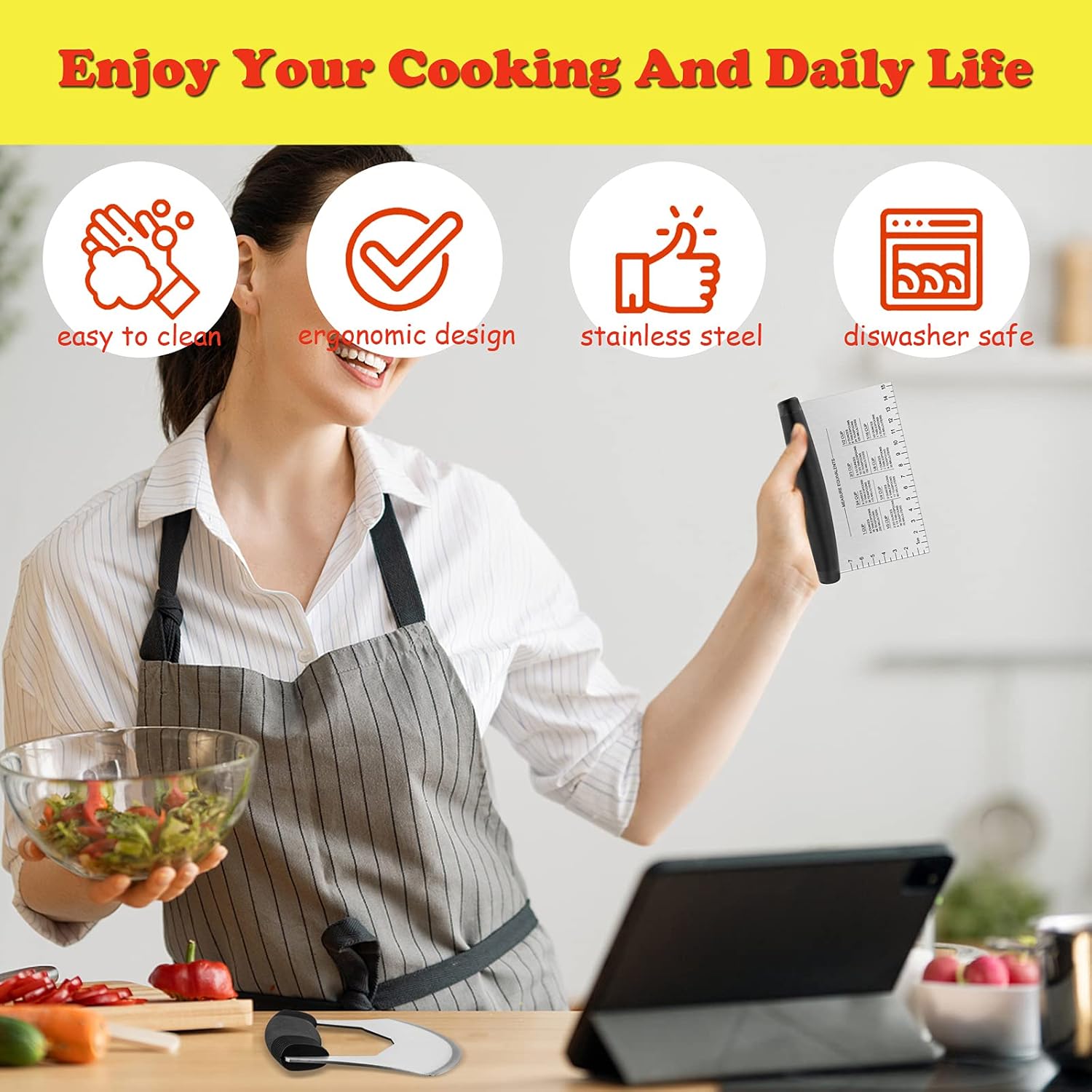 LASER SCALES – 6in x 4in of dough scraper with inches and centimeters scales on both sides for precise measure and quick reference while cooking or baking, Sharp enough blade is great for cutting veggies, dividing dough, smoothing cake, slicing bread, dicing pastry, transferring food from chopping board, cleaning flat tops as well