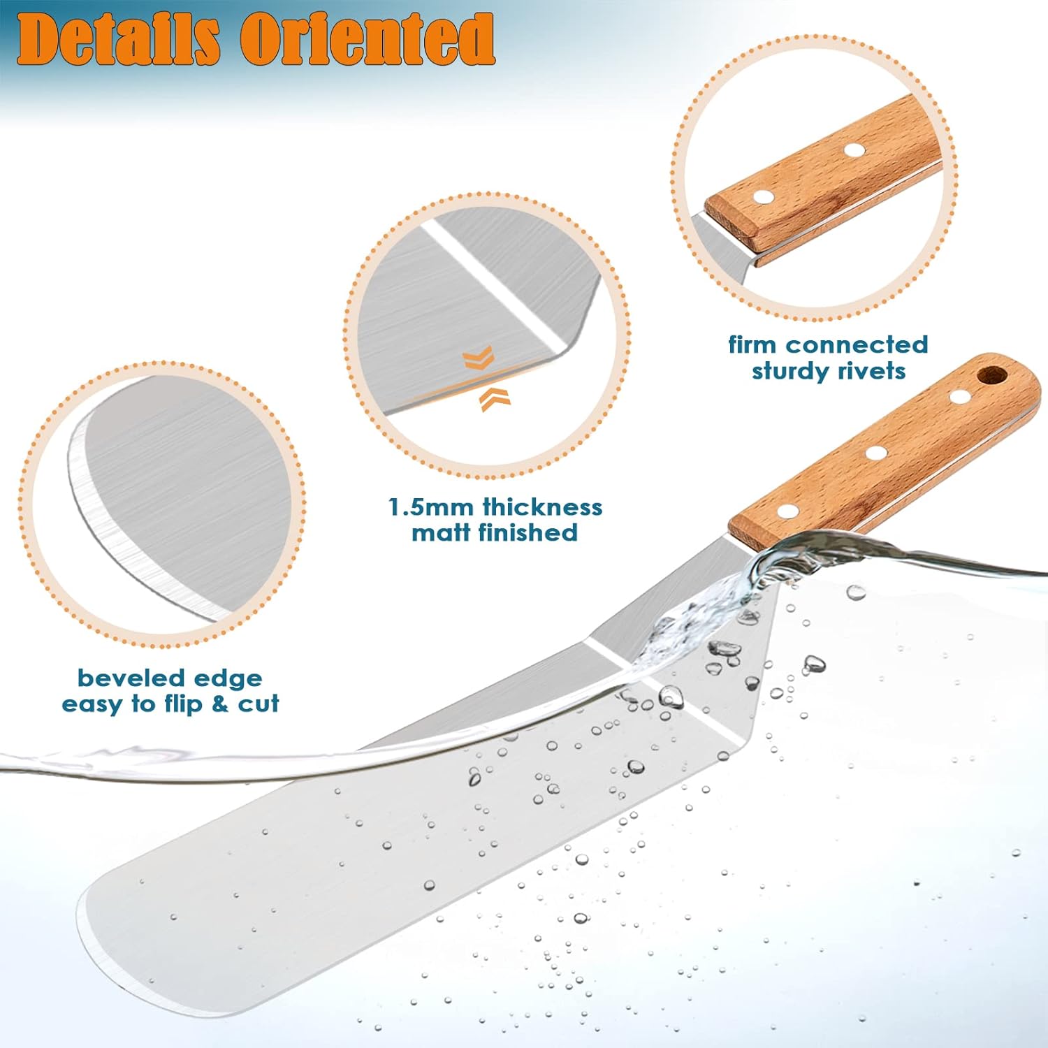 DURABLE & STURDY – HaSteeL griddle accessories are made of 1.5mm thickness of stainless steel ensure strong enough to pick up heavier food without bending, Heavy duty and high quality allow these griddle tools enjoying a long service life, Matt finished for easy hand cleaning