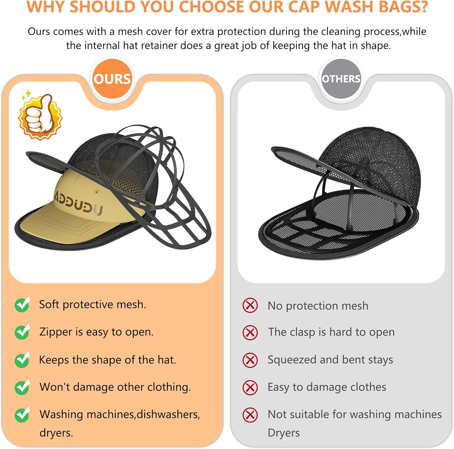 Revolutionary Anti-Deformation Design:The ADDUDU Hat Washer Cage is compatible with front-loading and top-loading washing machines, dryers, and dishwashers. Its reinforced buckle locks and sturdy support pillars keep baseball caps and hats securely in place, preventing stretching or misshaping during cycles. Pair it with the included 3-layer non-woven laundry bag for extra protection against friction and damage.