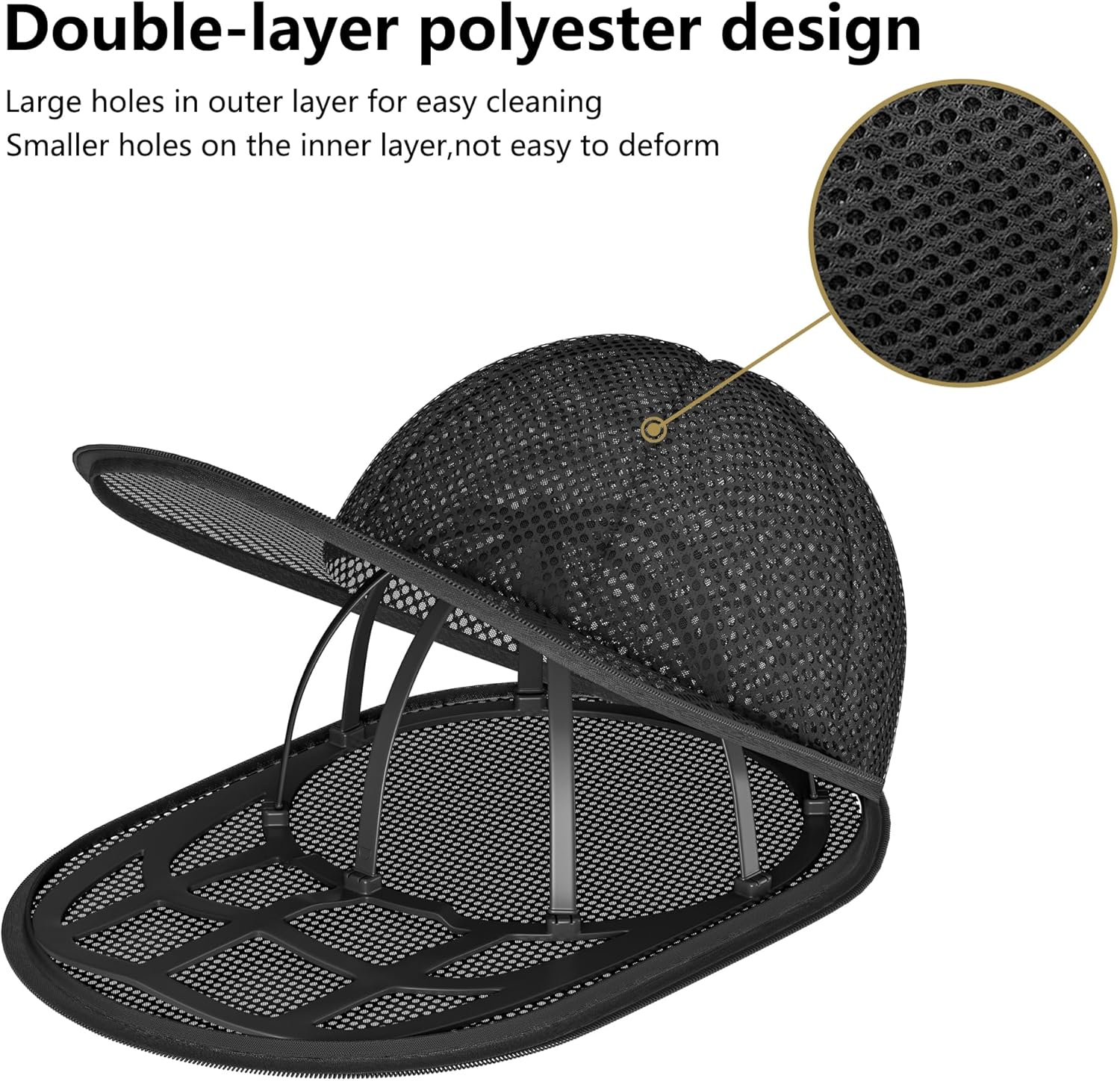 Effortless Setup & Gentle Protection:Featuring snap-lock fasteners and a tool-free assembly (includes base, support bar, and instructions), the ADDUDU Hat Washer simplifies cleaning. Simply secure your cap in the cage, place it in the machine with the laundry bag, and select a gentle cycle for flawless results every time.