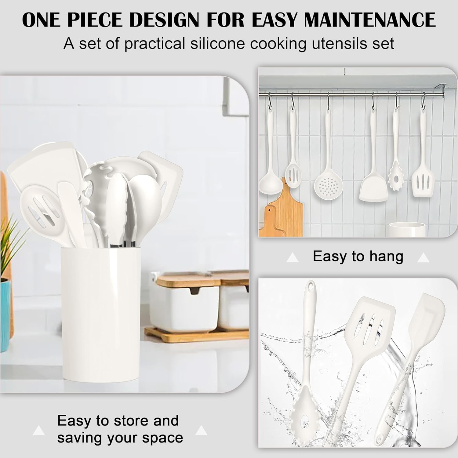 EASY TO CLEAN AND STORAGE: One-piece design with no gaps to avoid food debris and residues, Smooth surface makes kitchen utensil set very easy to clean, also dishwasher safe to making cleaning a breeze, With plastic holder to make storage easy, could save your storage space and make your kitchen countertops more tidy, bring more convenience to your kitchen life