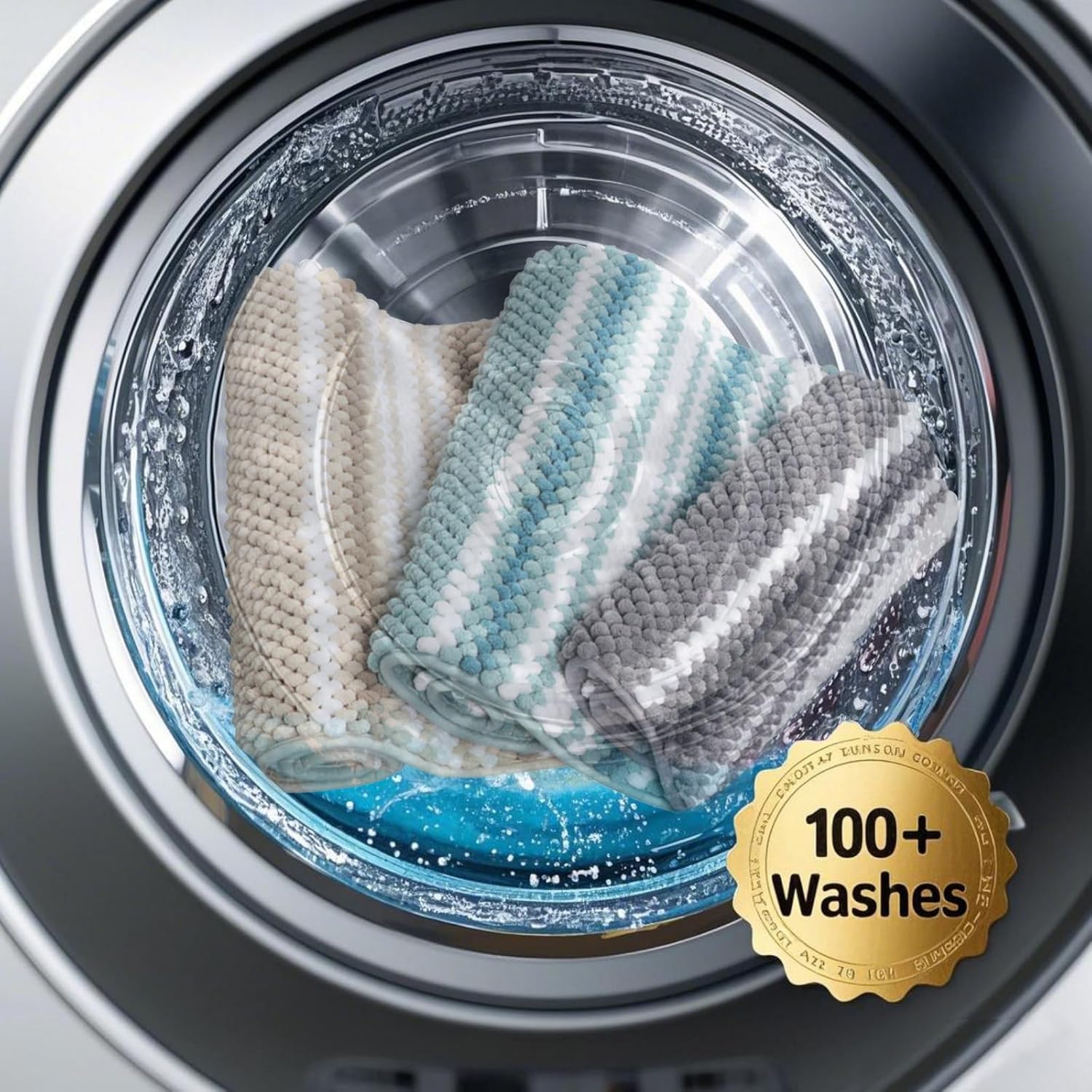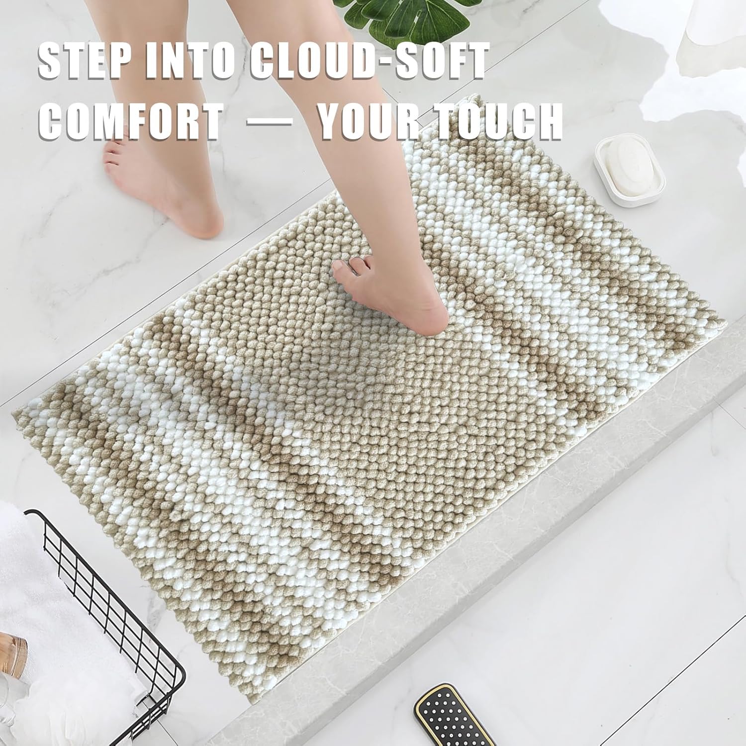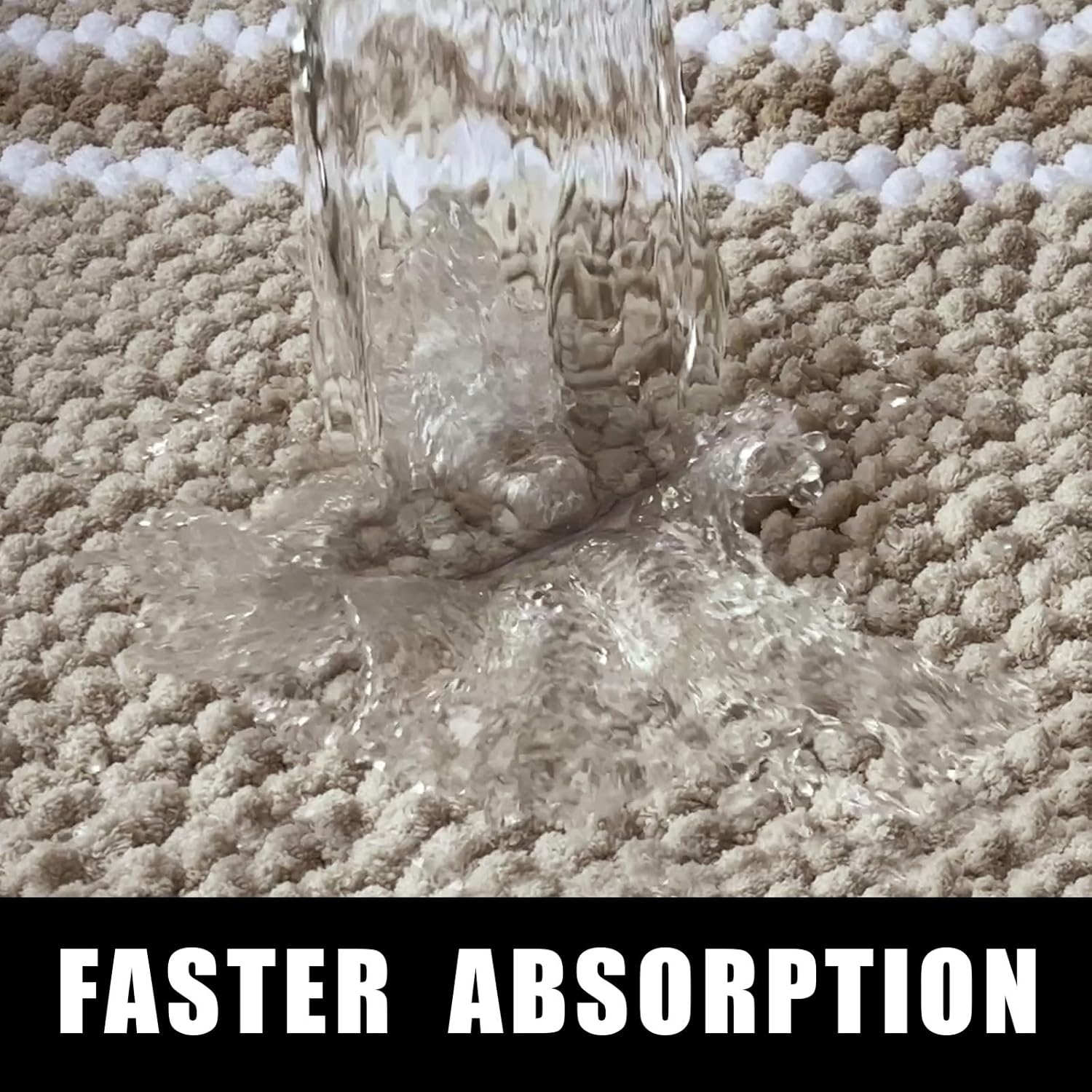 ODOR-FREE SUPER ABSORBENT DESIGN. Chenille bathroom rug soaks up water instantly, paired with non-slip hot melt base that never smells like rubber. Unlike PVC mats, it stays fresh through steamy showers without chemical odors