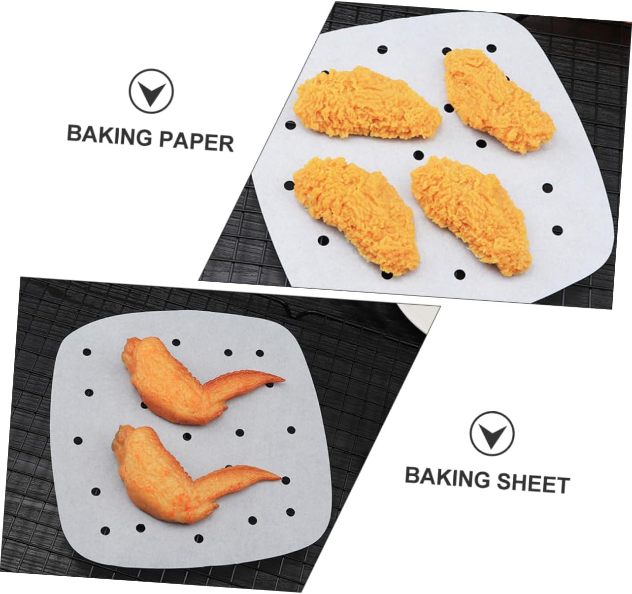 Baker paper–keep your bacon, chicken, breads, snacks, integrity and appearance, and have no effect on the taste of the food. ,paper for air fryer