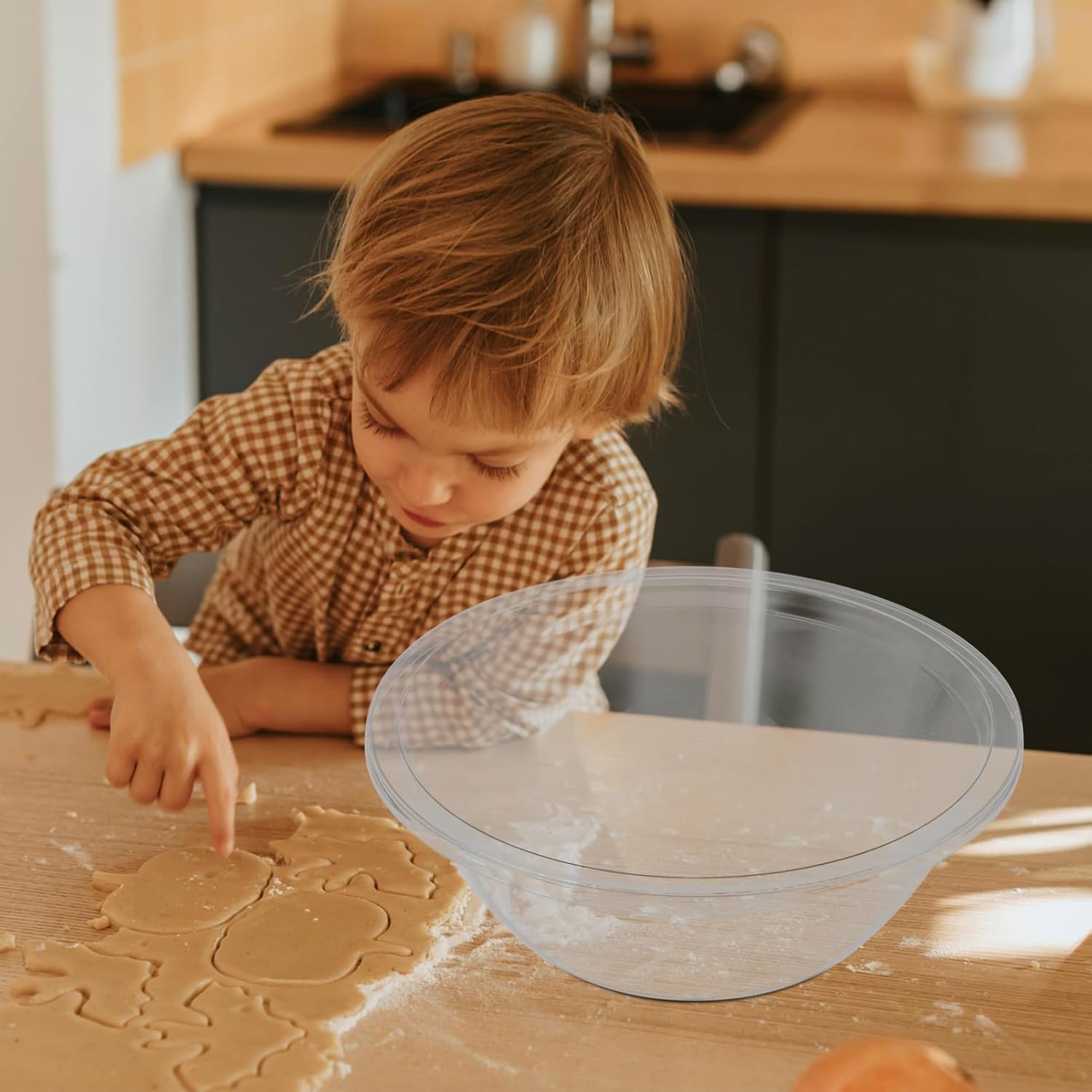 Lid for cleanliness: the included lid prevents dough from splattering, ensuring a clean and pleasant kitchen environment,food prep bowls,plastic bowl for cooking