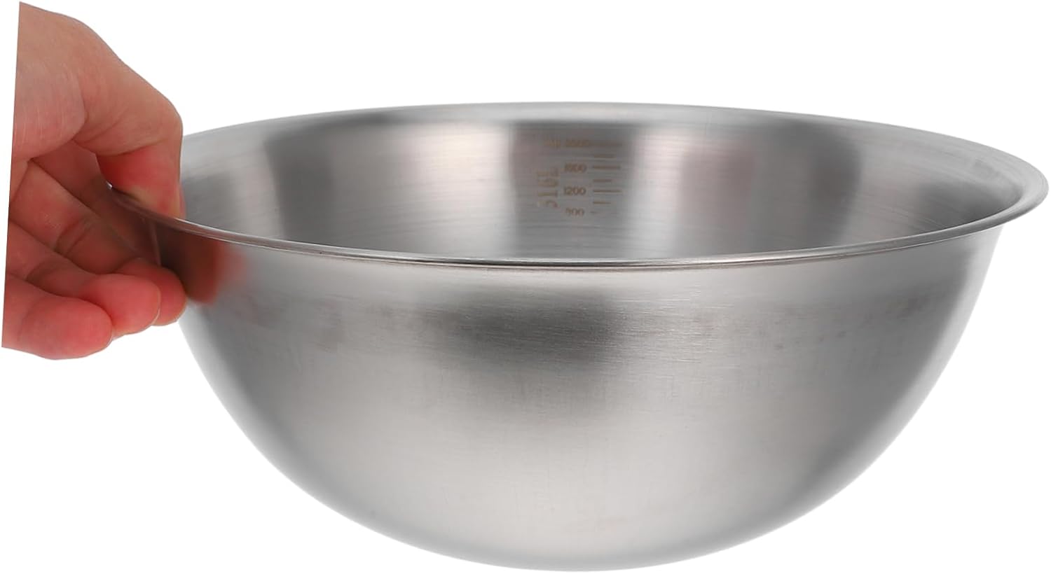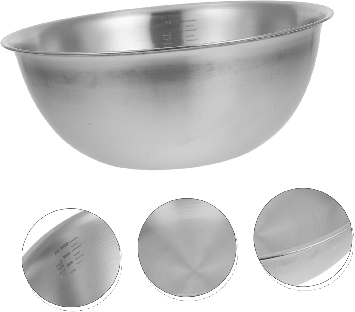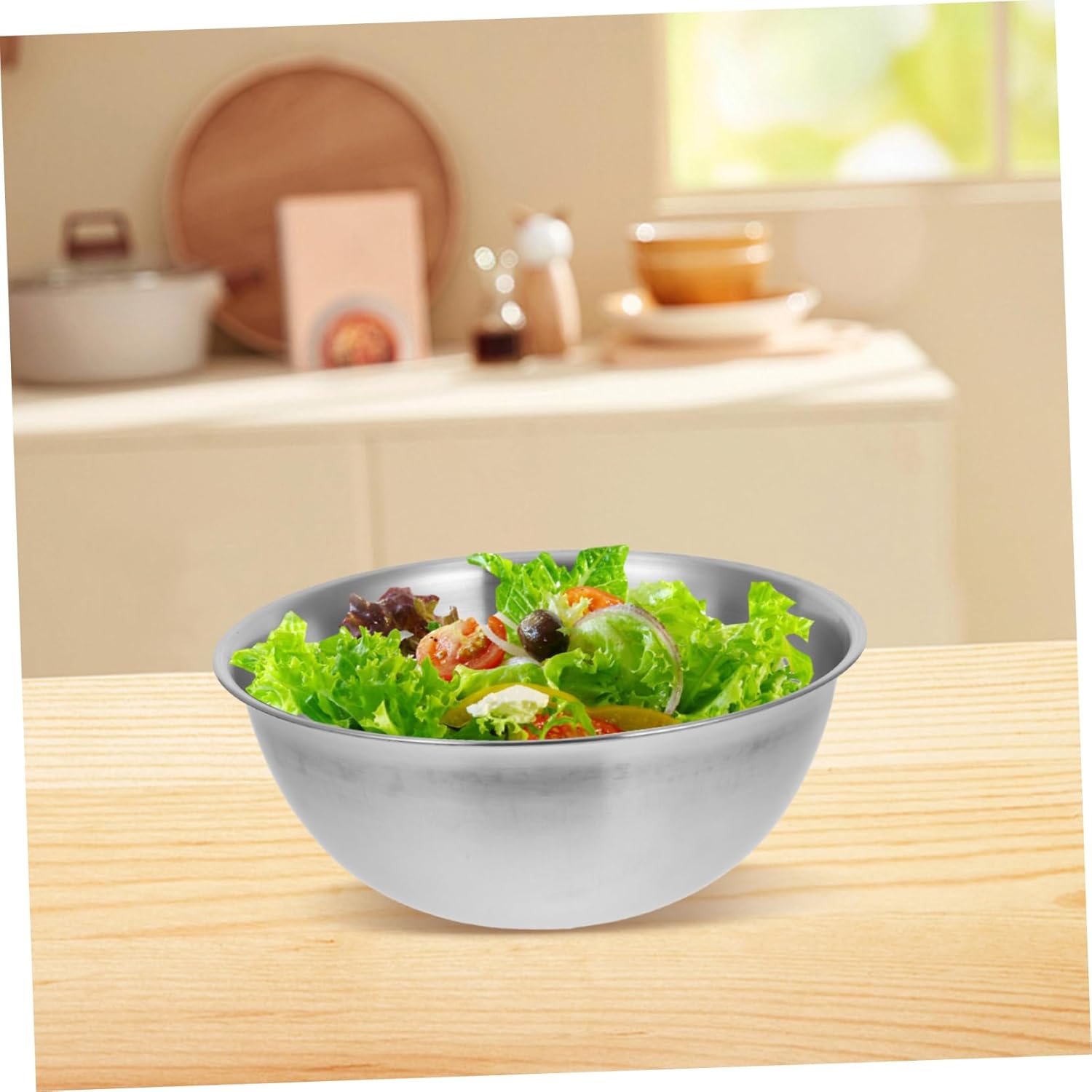 stainless steel bowl The measurement scale allows for precise ingredient control, while the thickened construction long-lasting use.salad bowls Designed for versatility, this stainless steel bowl is for mixing, dough, beating eggs, and preparing salads.stainless steel salad mixing bowl Its easy-to-clean surface convenience in the kitchen