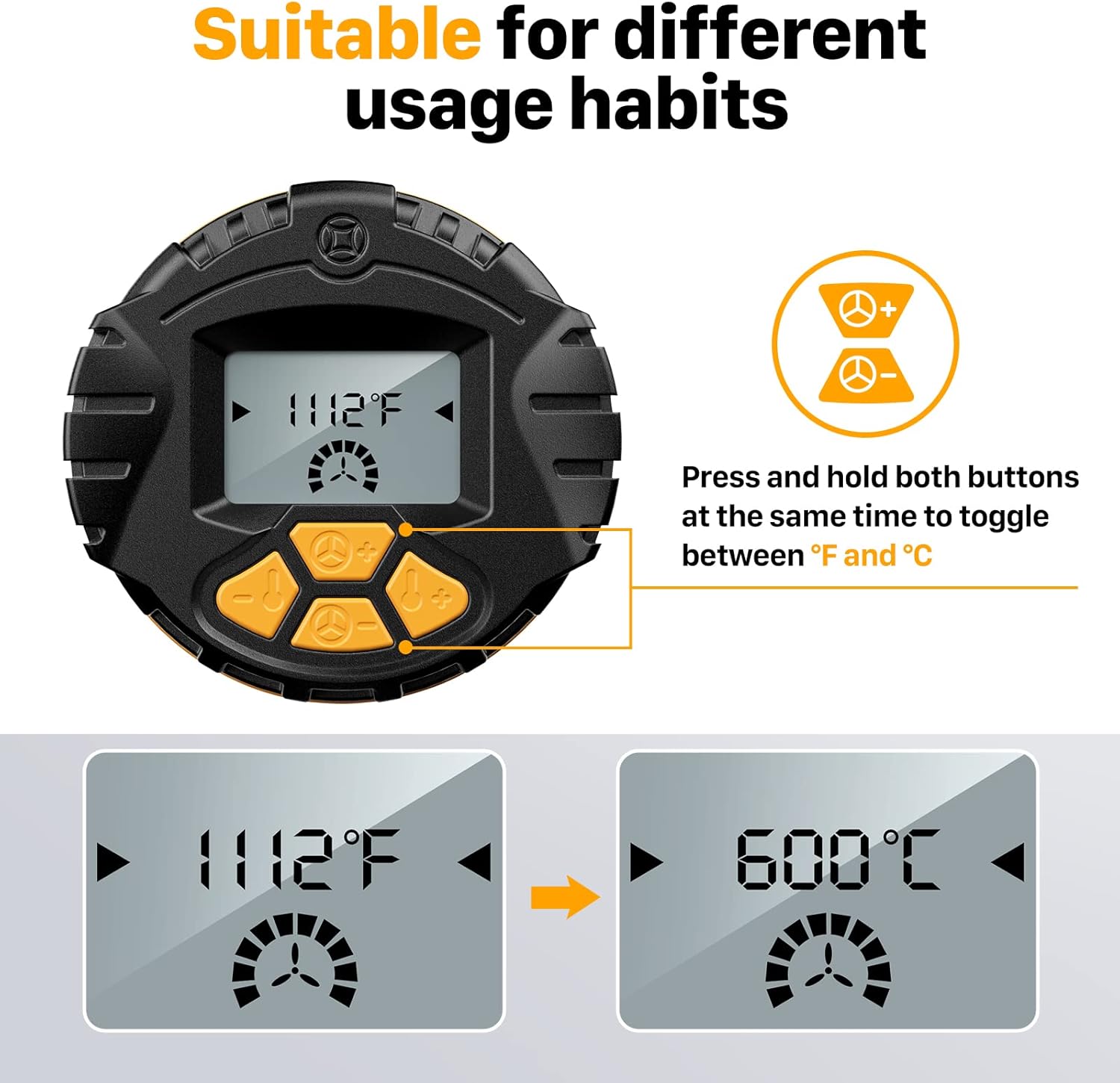 【Large LCD Display & Power-On Memory】 SEEKONE DIY heat gun digital control with Large LCD Display, you can adjust the air volume and temperature precisely, the use temperature is clearly on the LCD display. Our heat gun built-in power-on memory function, it will continue working on last set TEMP & SPEED, no need to resetting again. This is the first one heat gun can change ℃ to ℉, please press the 2 wind speed button in same time for few seconds to set the conversion between Celsius and Fahrenhe