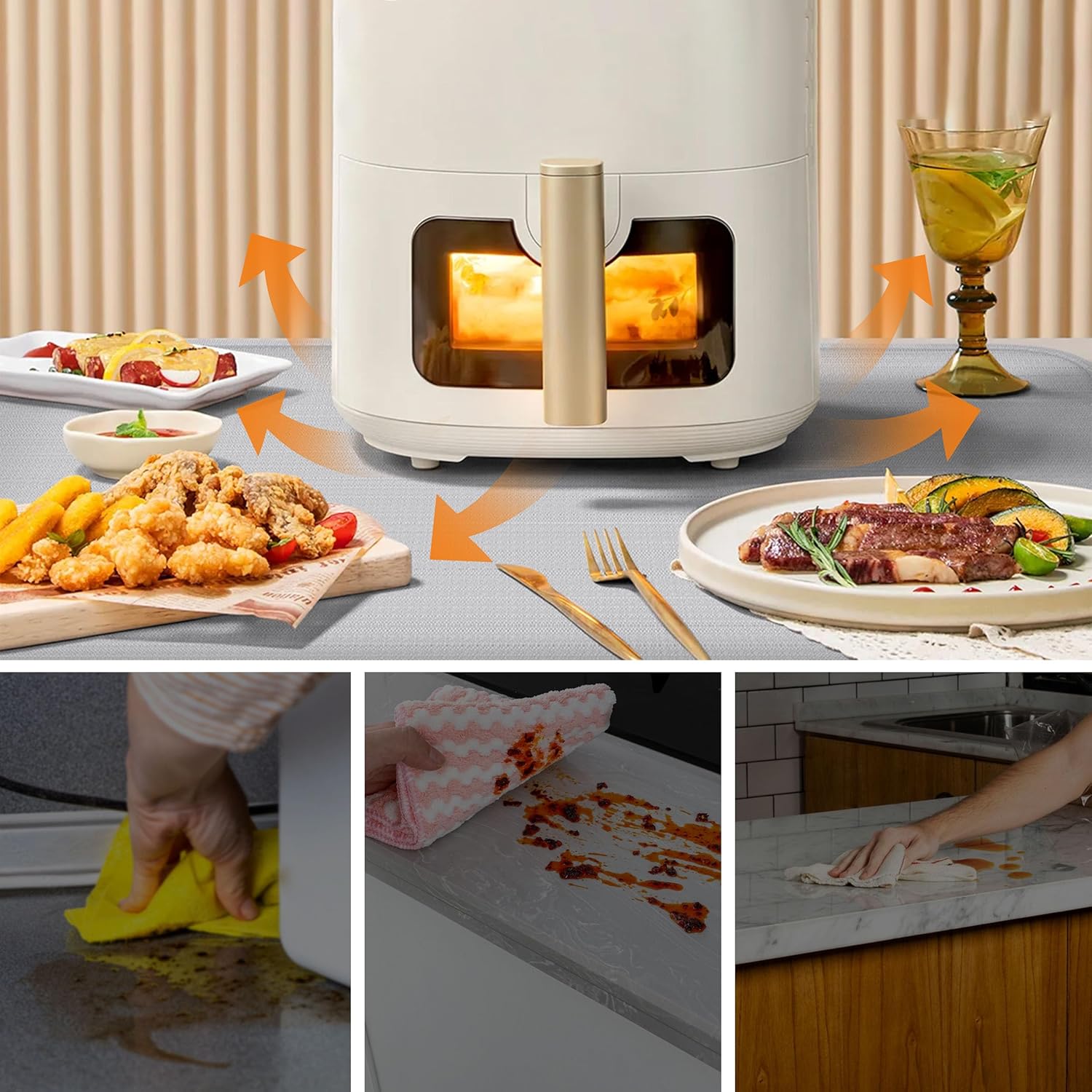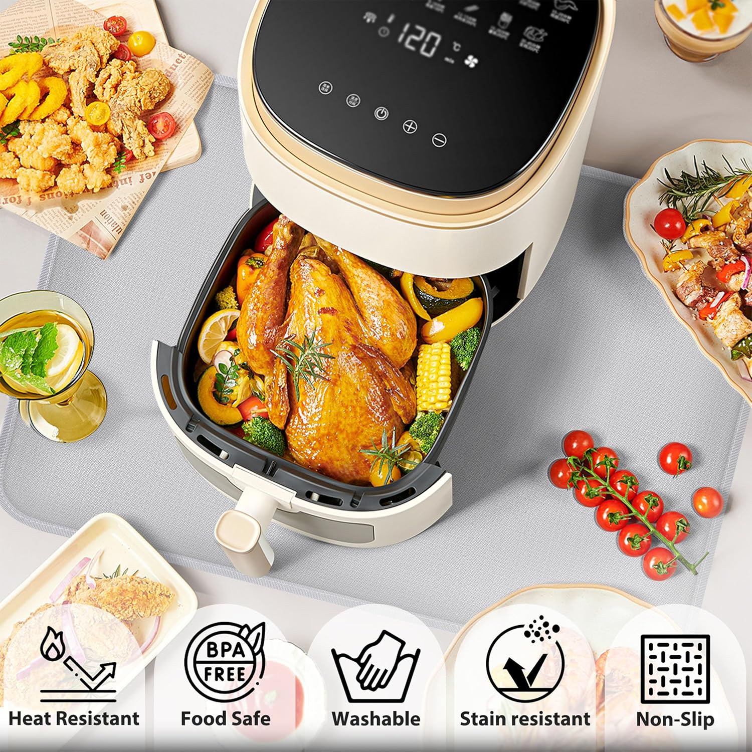 Guard your countertop, safe and worry-free : When you perform various operations in the kitchen and on the workbench, the protection of the countertop is undoubtedly crucial. The heat-resistant mat can effectively protect your countertop from heat radiation and prevent the air fryer or hot pot from damaging your wooden or marble countertop.