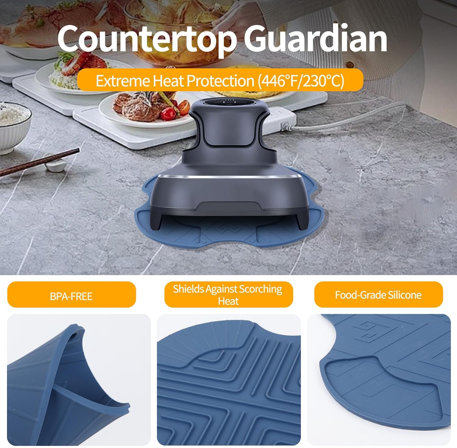 Heavy-Duty Heat-Resistant Mat: Made from BPA-Free Silicone, hold up 446℉/230°C, protecting surfaces from daily using.